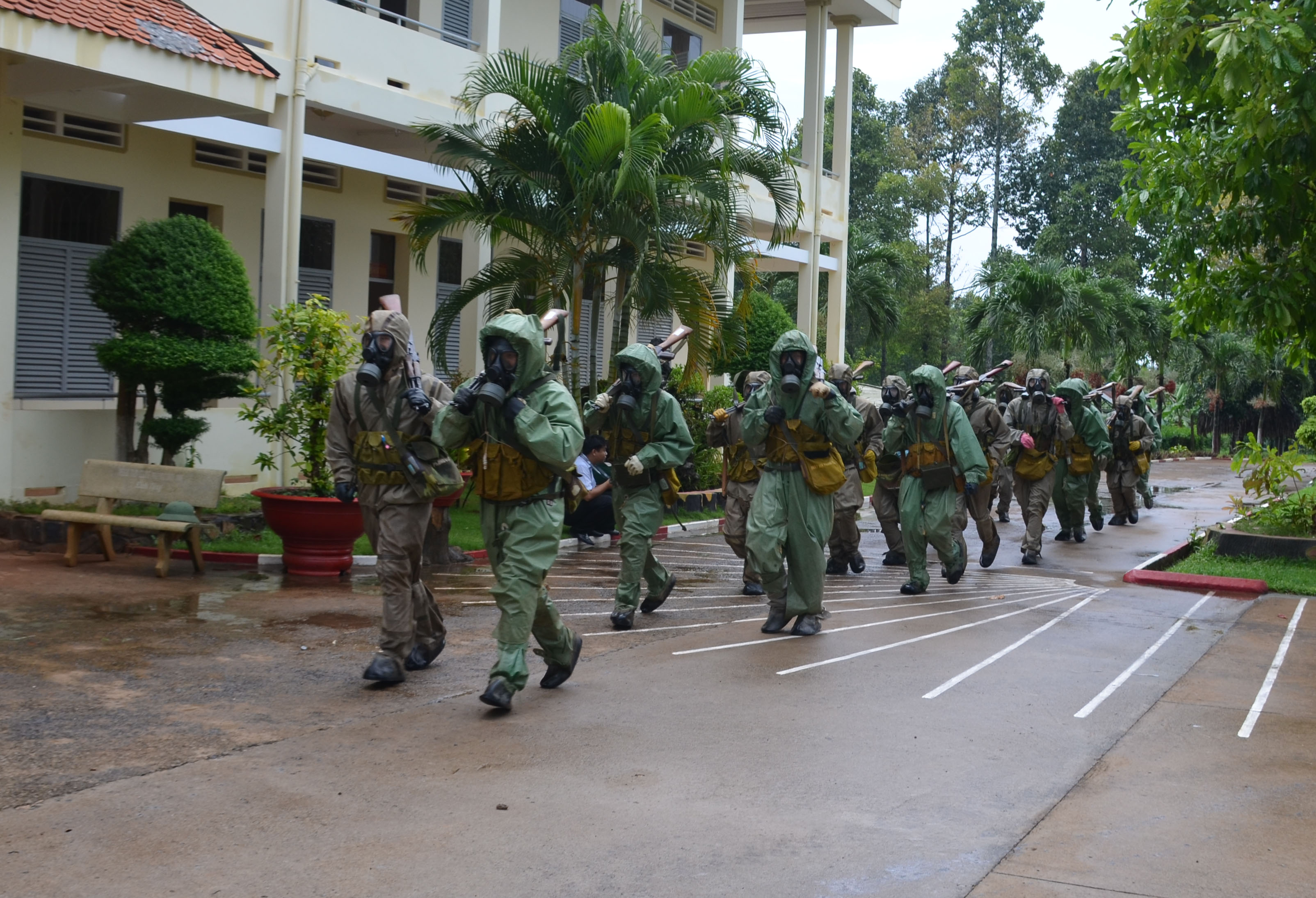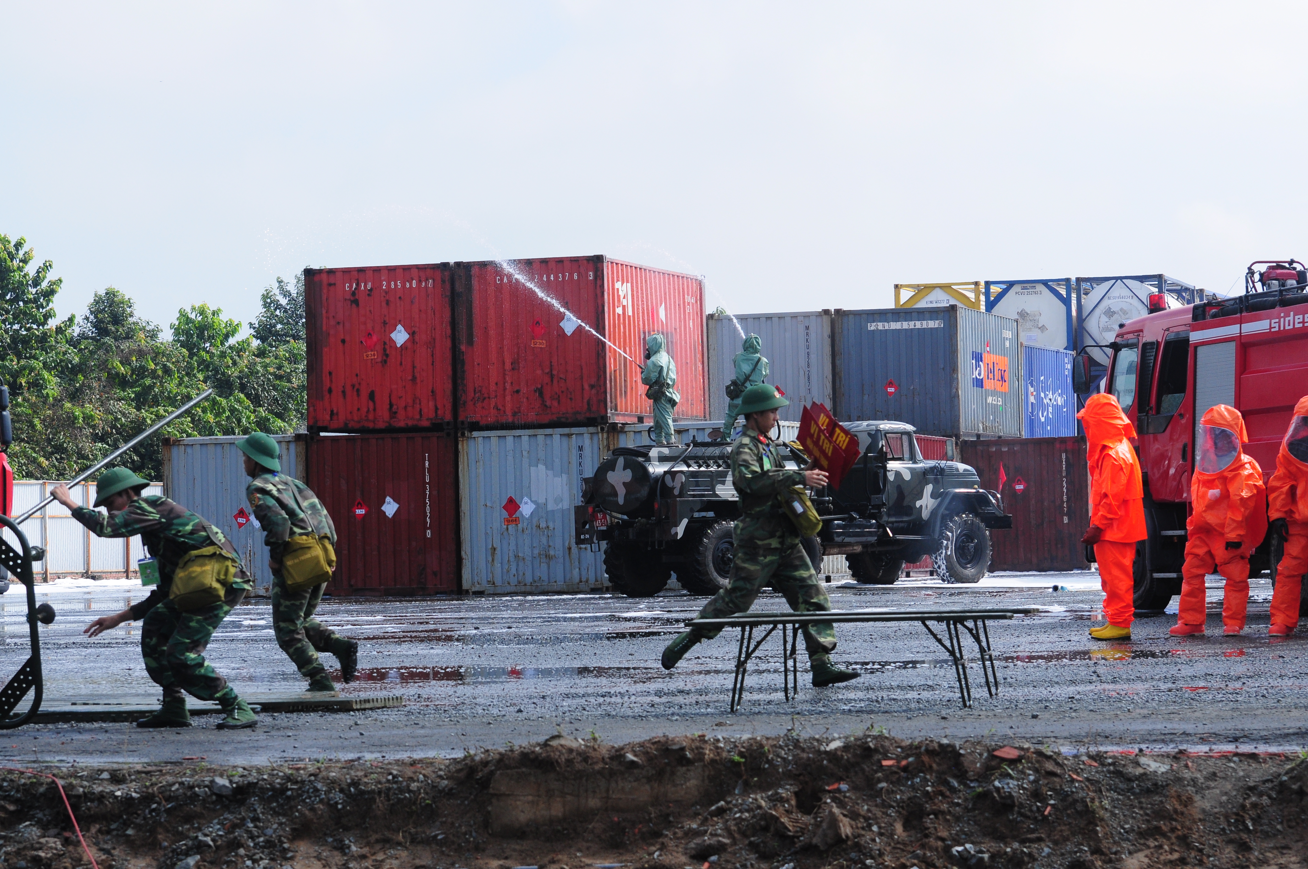 Huấn luyện cơ động với khí tài phòng hóa.