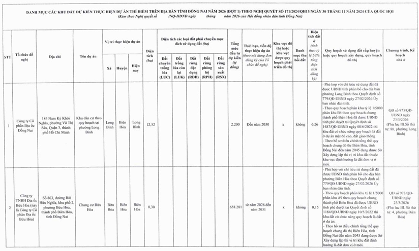 Đồng Nai vừa “mở khoá” quan trọng cho thị trường bất động sản khi HĐND tỉnh khóa XI thống nhất thông qua Nghị quyết danh mục 9 khu đất với tổng diện tích 116,08 ha để thực hiện dự án thí điểm nhà ở thương mại theo Nghị quyết 171/2024/QH15 của Quốc hội.