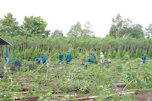 Trong 6 tháng đầu năm nay, Bộ CHQS tỉnh đã huy động trên 4.000 lượt cán bộ, chiến sĩ, dân quân thường trực phối hợp cùng các ngành chức năng giúp dân dựng lại 120 căn nhà bị tốc mái và trên 200 ngàn nọc tiêu, thu dọn 115 ha cao su, 5 ha điều bị gãy, đổ do thiên tai gây ra.