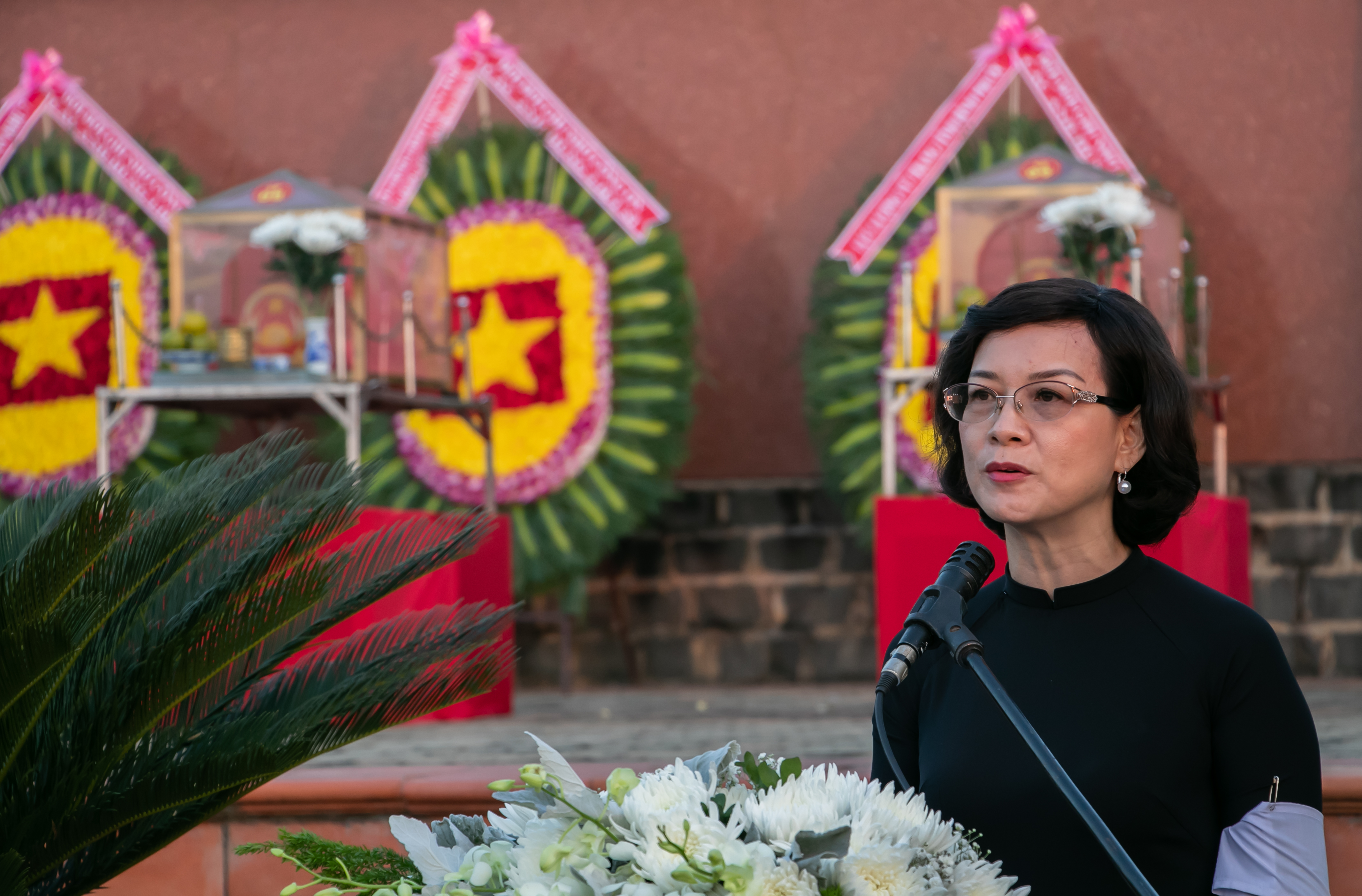 Đồng chí Trần Tuyết Minh – Trưởng Ban Tuyên giáo Tỉnh ủy Bình Phước đọc điếu văn tại buổi lễ.