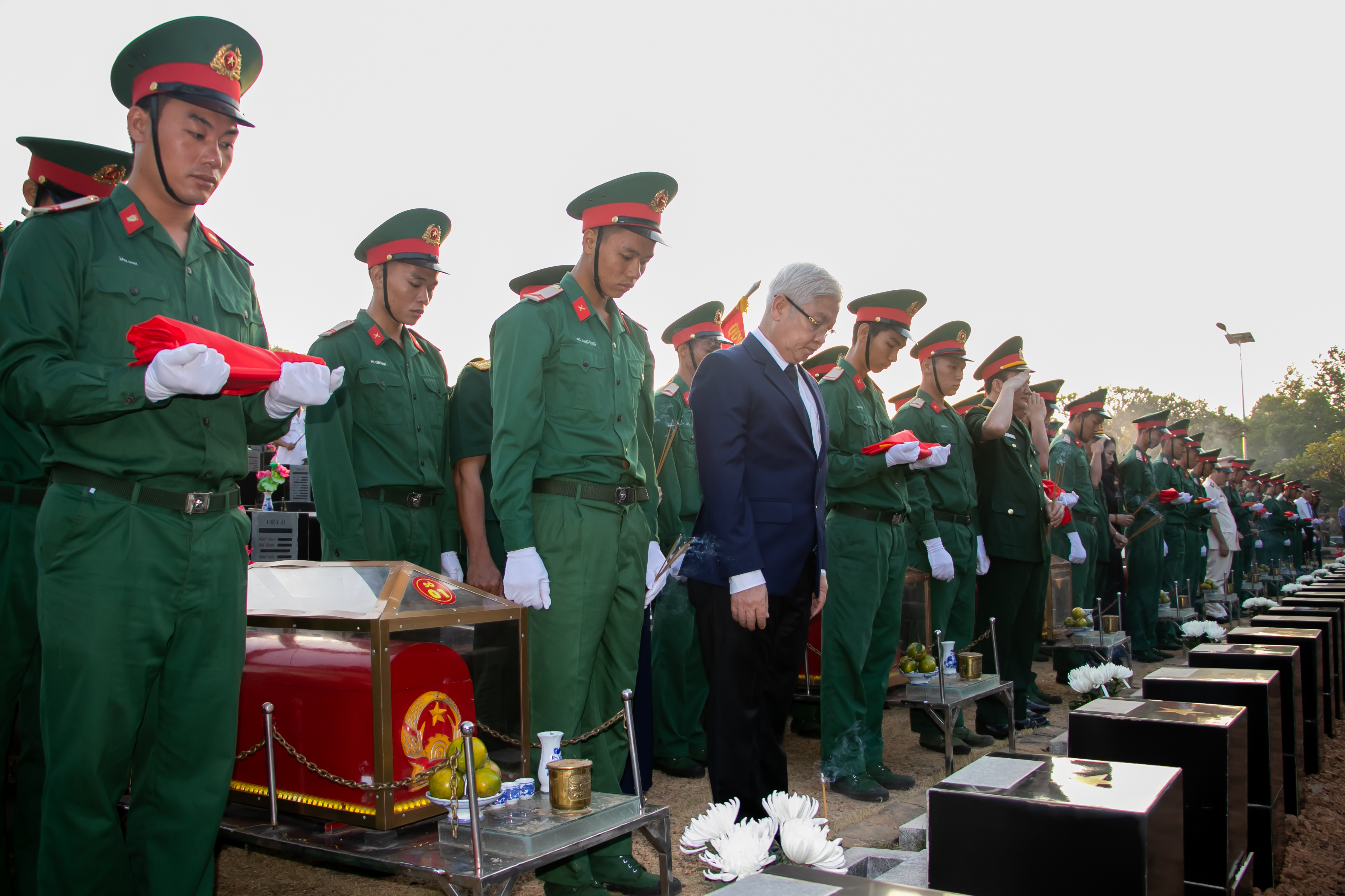Đợt truy điệu và an tang lần này có 27 hài cốt liệt sĩ đều là liệt sĩ chưa xác định được danh tính, trong đó có 25 hài cốt được tìm kiếm, cất bốc từ chiến trường các tỉnh thuộc Campuchia; 2 hài cốt được tìm thấy trong nước được đưa về nghĩa trang liệt sĩ tỉnh Bình Phước.