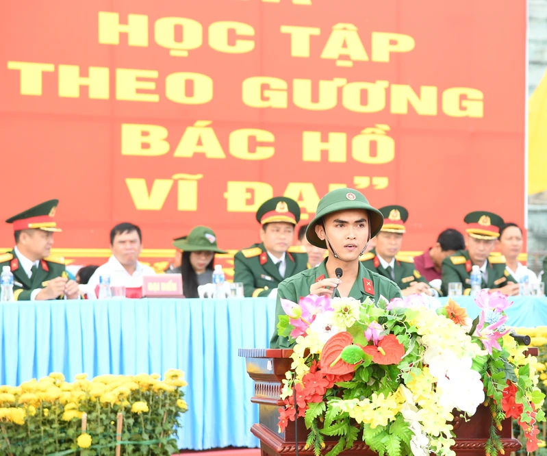 Thanh niên Lê Viết Toàn đại diện các thanh niên lên đường nhập ngũ bày tỏ quyết tâm.