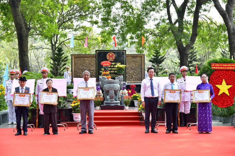 Đồng chí Lê Quốc Phong nhấn mạnh, lễ trao Bằng “Tổ quốc ghi công” không chỉ là tri ân đối với các anh hùng liệt sĩ, mà còn là lời nhắc nhở về trách nhiệm gìn giữ, bồi đắp truyền thống yêu nước, lý tưởng cách mạng và tinh thần cống hiến vì Tổ quốc, vì nhân dân. TPHCM xác định công tác đền ơn đáp nghĩa, chăm lo người có công và gia đình liệt sĩ là nhiệm vụ chính trị thường xuyên; sẽ tiếp tục thực hiện đầy đủ, kịp thời các chế độ, chính sách, đồng thời đẩy mạnh hoạt động tri ân thiết thực.