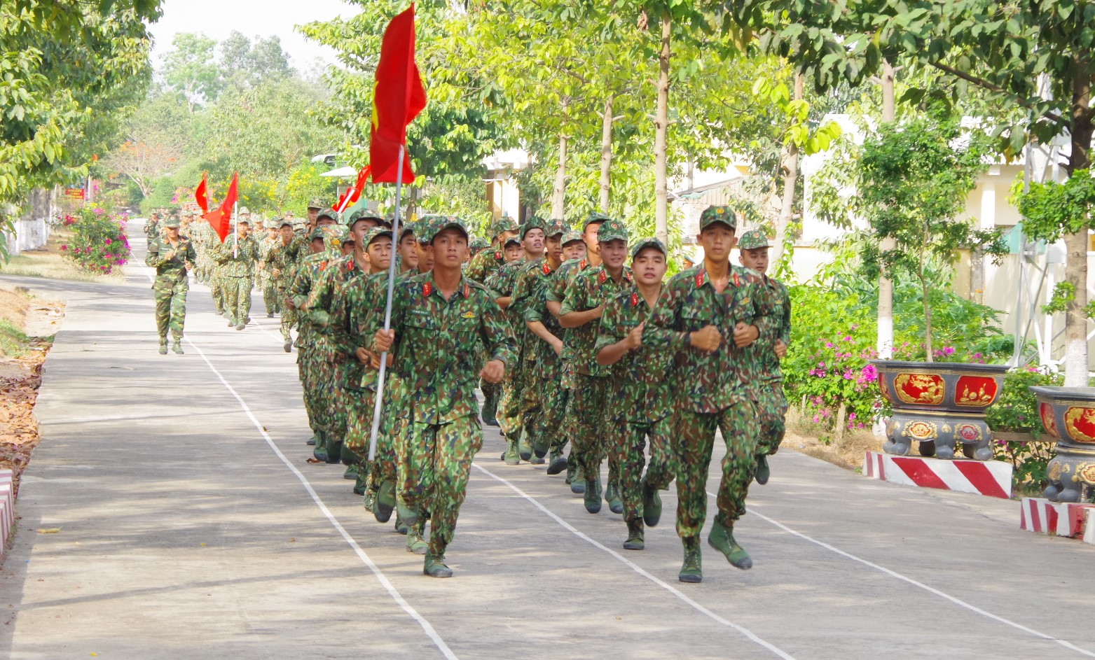 Cán bộ, chiến sĩ Trung đoàn thực hiện nội dung chạy bộ 3.000m
