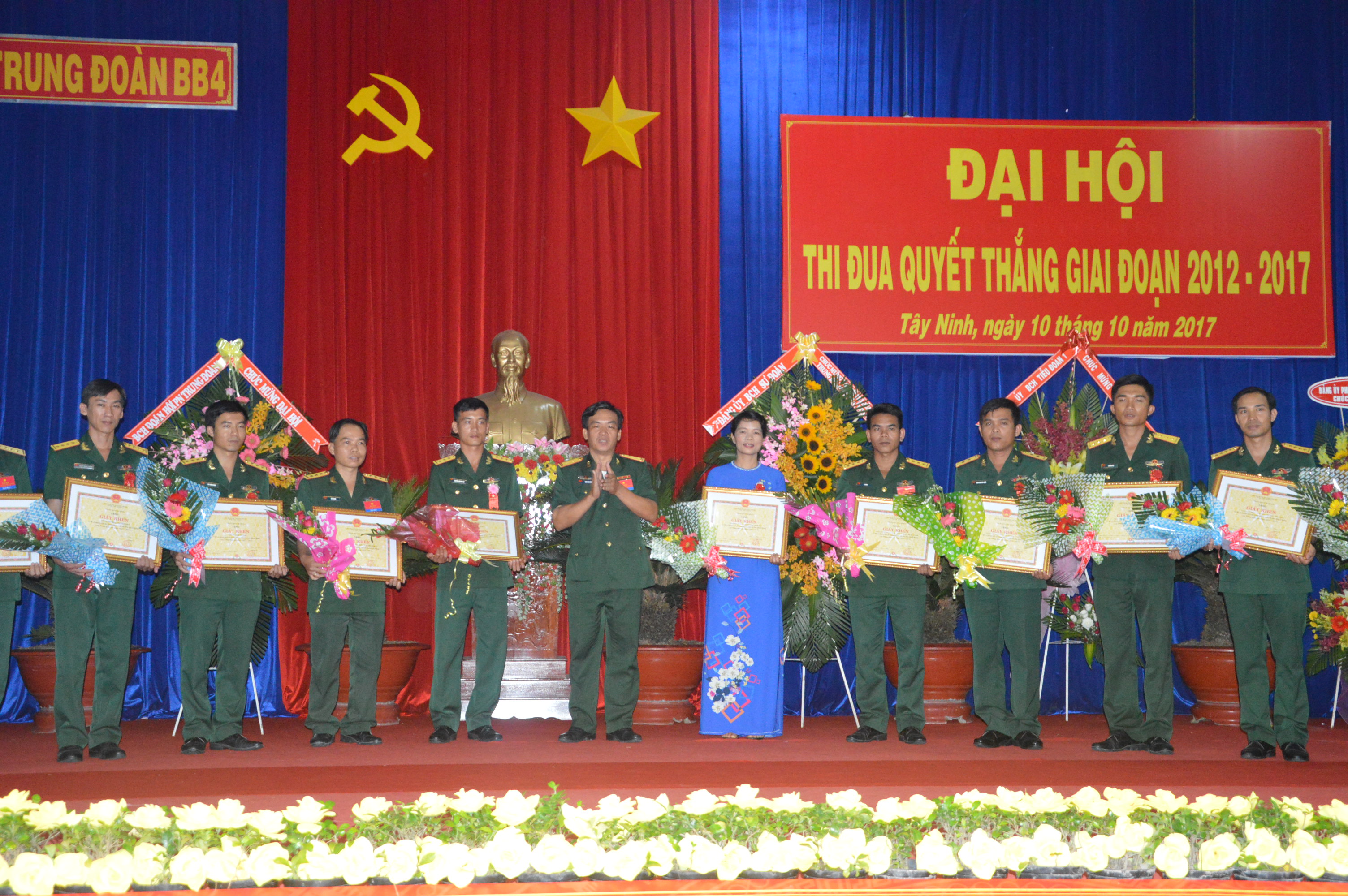 Tại đại hội, Đảng ủy Chỉ huy Trung đoàn khen thưởng cho 4 tập thể và 8 cá nhân đã có thành tích hoàn thành xuất sắc nhiệm vụ 5 năm 2012 – 2017.