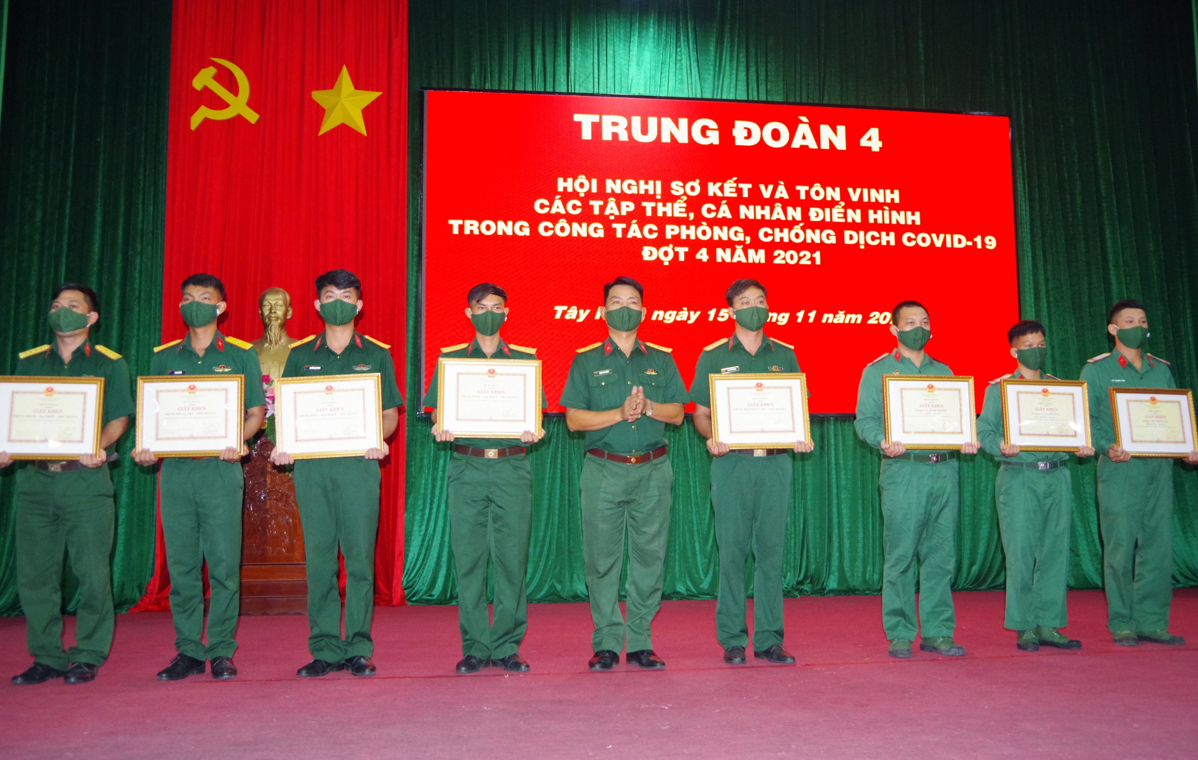 Quá trình hỗ trợ phòng, chống dịch Covid-19 đơn vị được các địa phương khen thưởng 16 tập thể và 30 cá nhân; trung đoàn khen thưởng 7 tập thể và 11 cá nhân; đề nghị sư đoàn khen thưởng 4 tập thể và 11 cá nhân; đề nghị Quân khu tặng bằng khen 2 tập thể và 3 cá nhân; đề nghị Bộ Quốc phòng tặng bằng khen 1 tập thể và 1 cá nhân có thành tích xuất sắc phòng, chống dịch Covid-19.