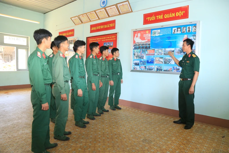 Cán bộ Trung đoàn 812 giới thiệu truyền thống đơn vị.