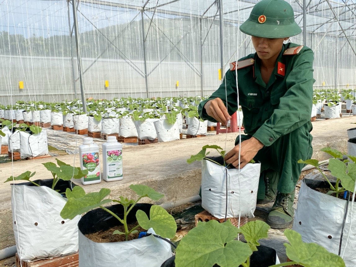 Ngoài nhiệm vụ huấn luyện - SSCĐ thì công tác tăng gia sản xuất cũng là nhiệm vụ trọng tâm của đơn vị. Cùng với sự đoàn kết, nỗ lực phấn đấu vượt qua mọi khó khăn lựa chọn vật nuôi cây trồng, Đảng ủy, Ban chỉ huy Trung đoàn tích cực đầu tư vào công tác tăng gia sản xuất; chuyển đổi cây trồng vật nuôi, đưa vào bữa ăn cho bộ đội những thực phẩm sạch, đạt chất lượng cao. Trong năm, đơn vị đã tổ chức trồng 3 vụ dưa lưới, tổng thu hoạch được hơn 7 tấn, với số tiền hơn 170 triệu đồng. Ngoài ra, đơn vị đã cải tạo lại hệ thống ao, hồ để thả hơn 50 kg cá giống, góp phần thiết thực nâng cao đời sống vật chất cho cán bộ, chiến sĩ.