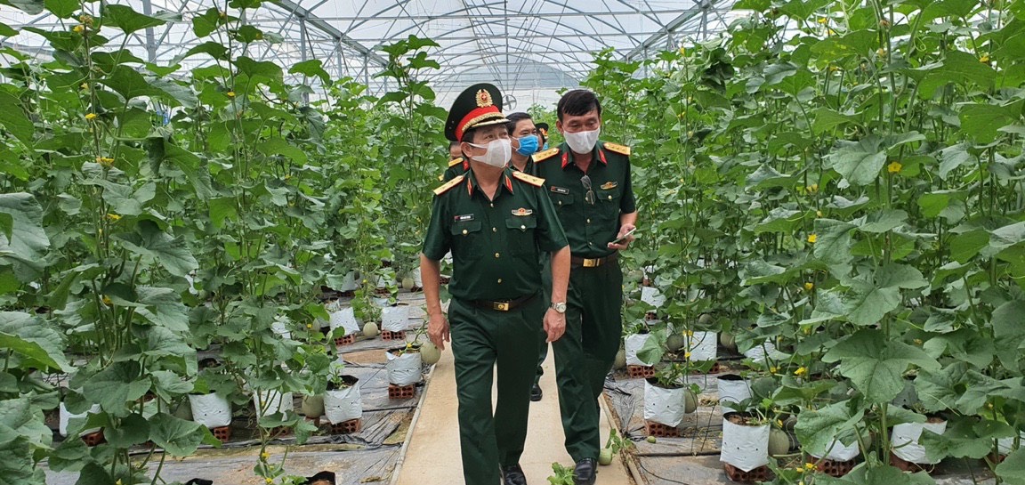 Trung tướng Trần Hoài Trung, Bí thư Đảng ủy, Chính ủy Quân khu 7 kiểm tra khu tăng gia sản xuất kỹ thuật cao của Trung đoàn Minh Đạm.