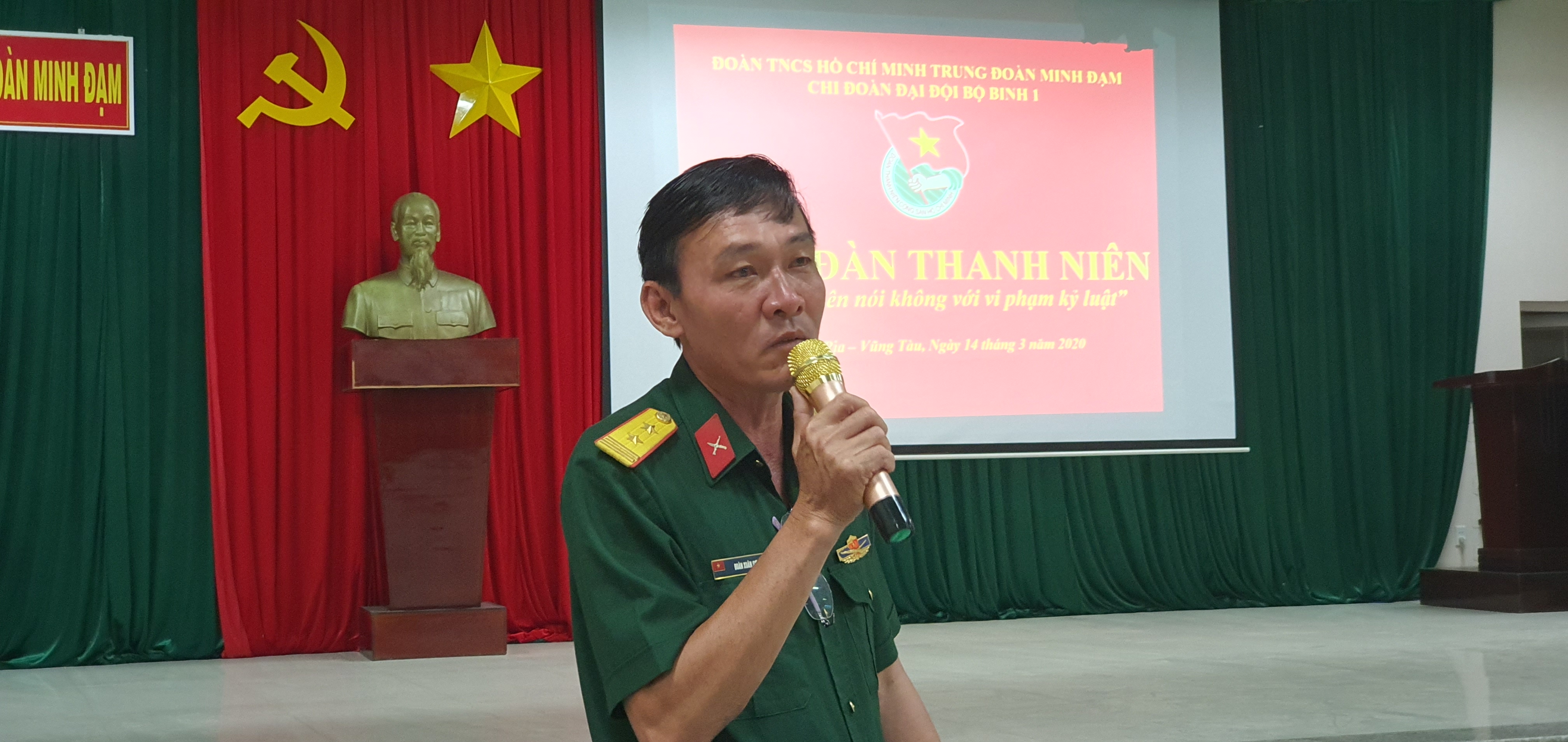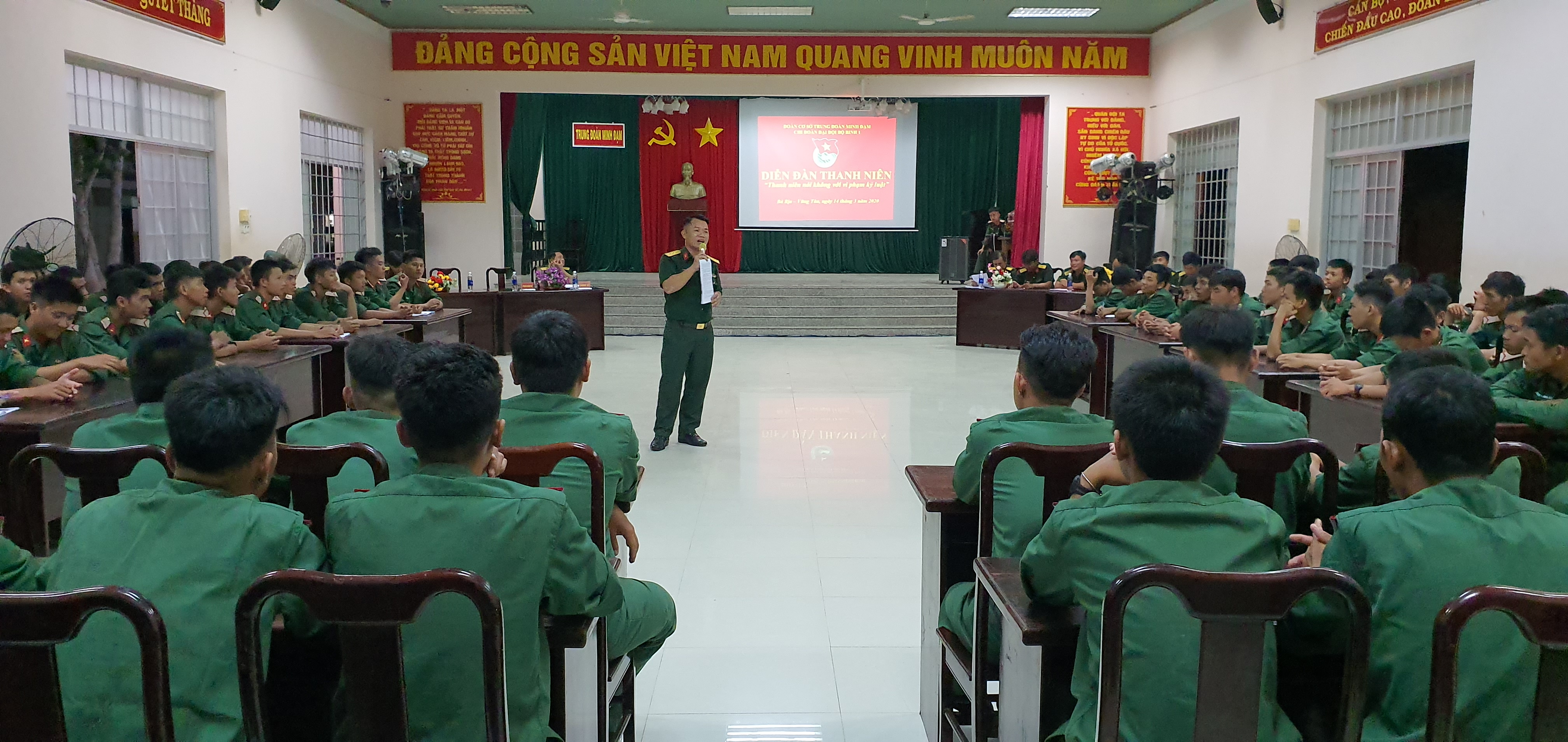 Trung tá Đoàn Xuân Sơn - Chính ủy Trung đoàn phát biểu tại diễn đàn
