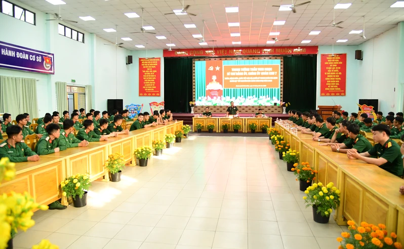Cán bộ, chiến sĩ Trung đoàn Gia định dự nghe Trung tướng Trần Vinh Ngọc, Bí thư Đảng ủy, Chính ủy Quân khu 7 đã đến thăm, động viên, chúc Tết.