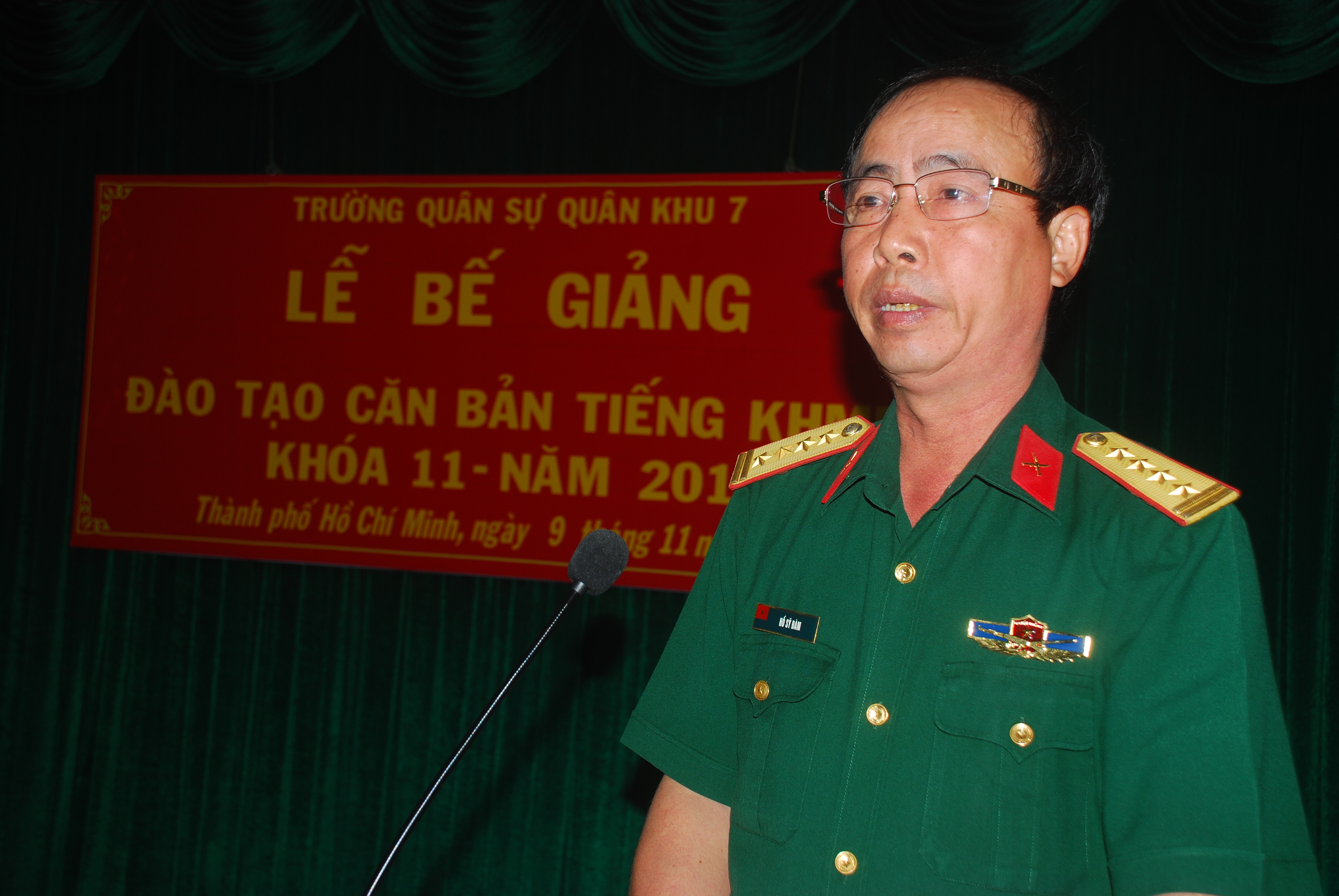 Đại tá Hồ Sỹ Đàm, Phó Hiệu trưởng Trường Quân sự QK7 báo cáo kết quả khóa học