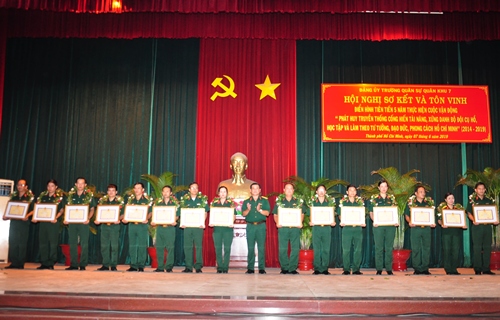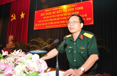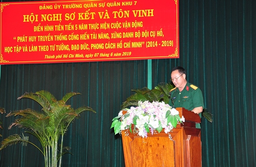 Trường Quân sự Quân khu 7 đã khen thưởng 9 tập thể, 8 cá nhân điển hình trong 5 năm thực hiện Cuộc vận động “Phát huy truyền thống, cống hiến tài năng, xứng danh Bộ đội Cụ Hồ”.