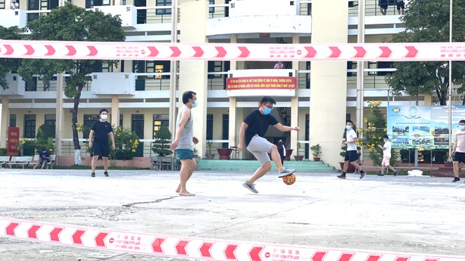 Khuôn viên khu cách ly bố trí đầy đủ các dụng cụ tập thể dục thể thao và có cả sân rộng để mọi người chơi bóng đá... rèn luyện sức khỏe. Mỗi buổi sáng và chiều, người được cách ly xuống sân chơi thể thao, chạy bộ.