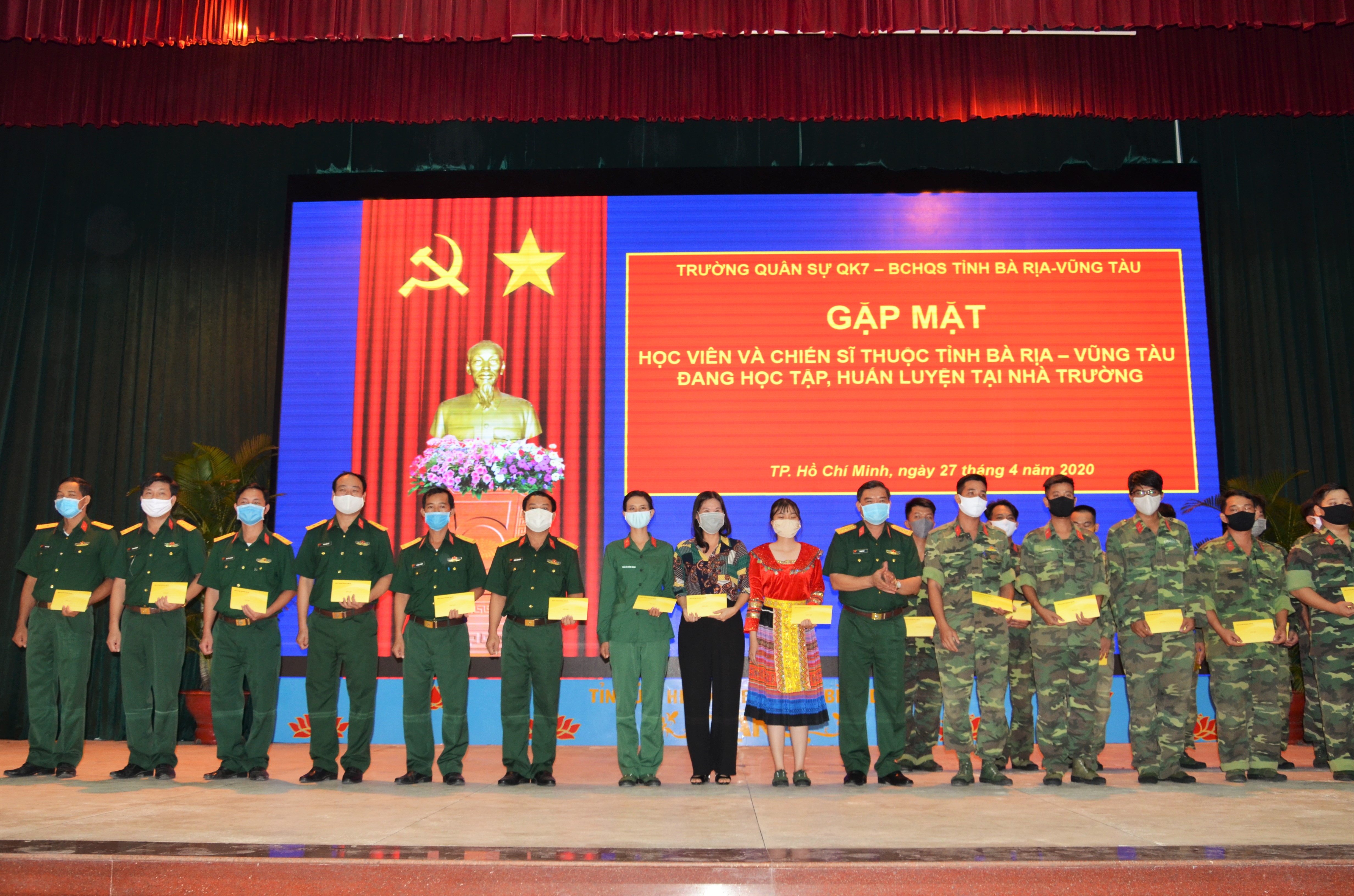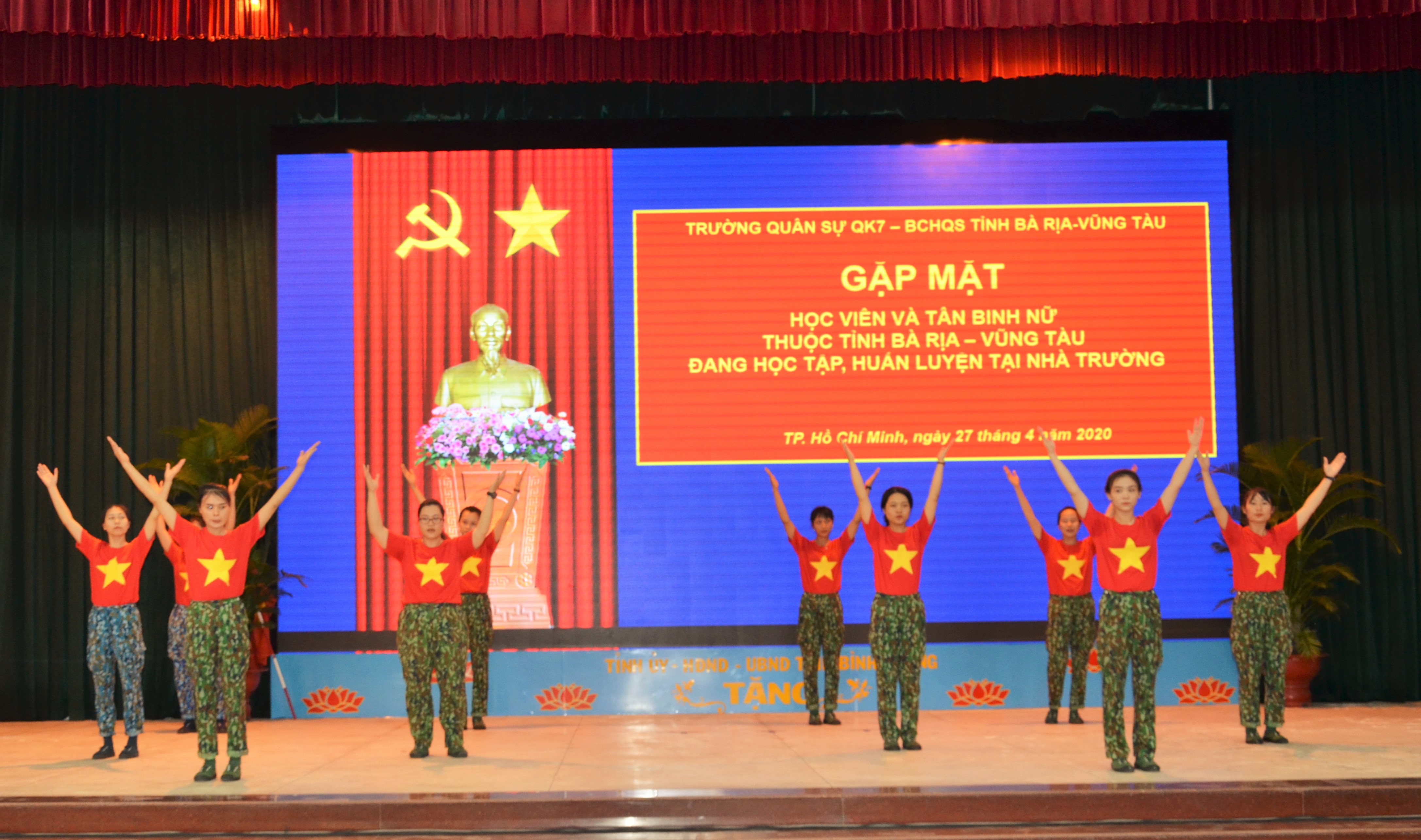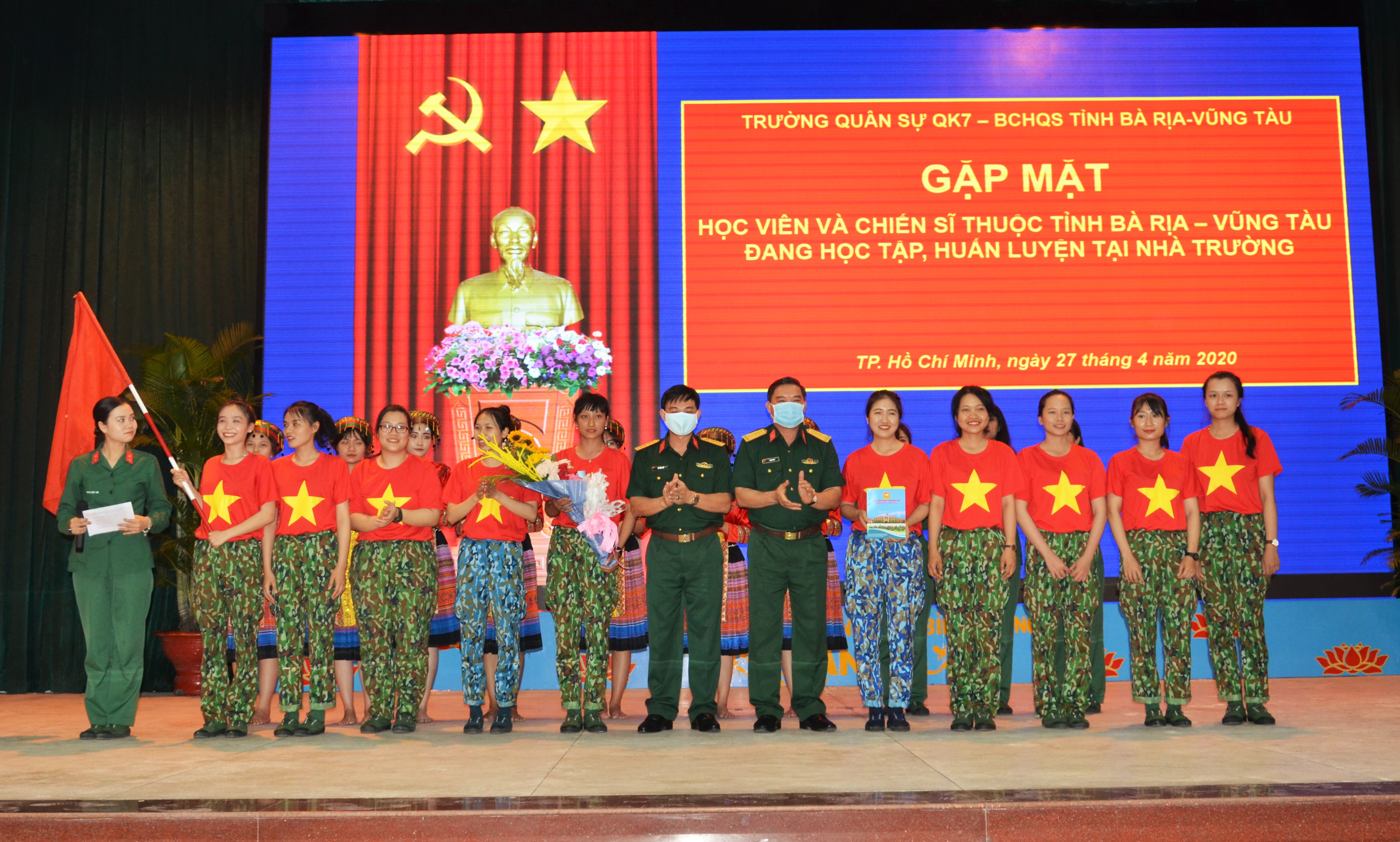(QK7 Online) - Ngày 27 tháng 4, Trường Quân sự Quân khu 7 - Bộ CHQS tỉnh Bà Rịa - Vũng Tàu tổ chức gặp mặt học viên và Tân binh nữ thuộc tỉnh Bà Rịa - Vũng Tàu đang học tập, huấn luyện tại nhà trường. Đại tá Hà Công Chờ, Phó Chính ủy nhà trường và Đại tá Phạm Phú Ý, Chỉ huy trưởng Bộ Chỉ huy quân sự tỉnh Bà Rịa - Vũng Tàu đến dự.