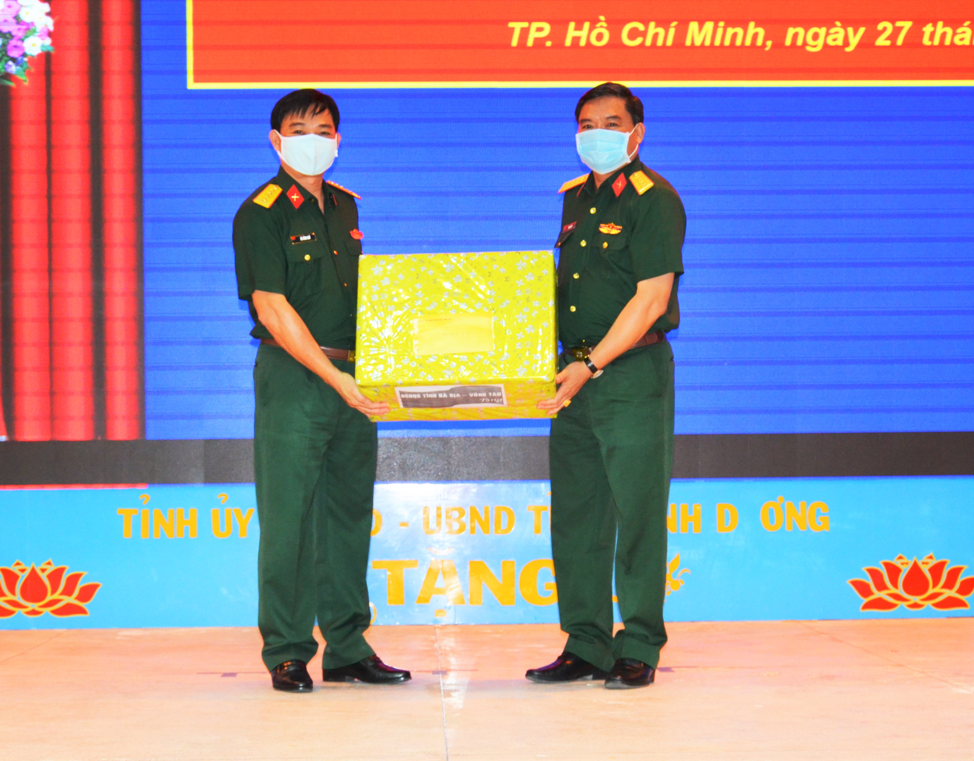 tặng quà cho Ban giám hiệu Trường Quân sự Quân khu Đại tá Phạm Phú Ý, Chỉ huy trưởng Bộ CHQS tỉnh Bà Rịa – Vũng Tàu tặng quà cho các học viên