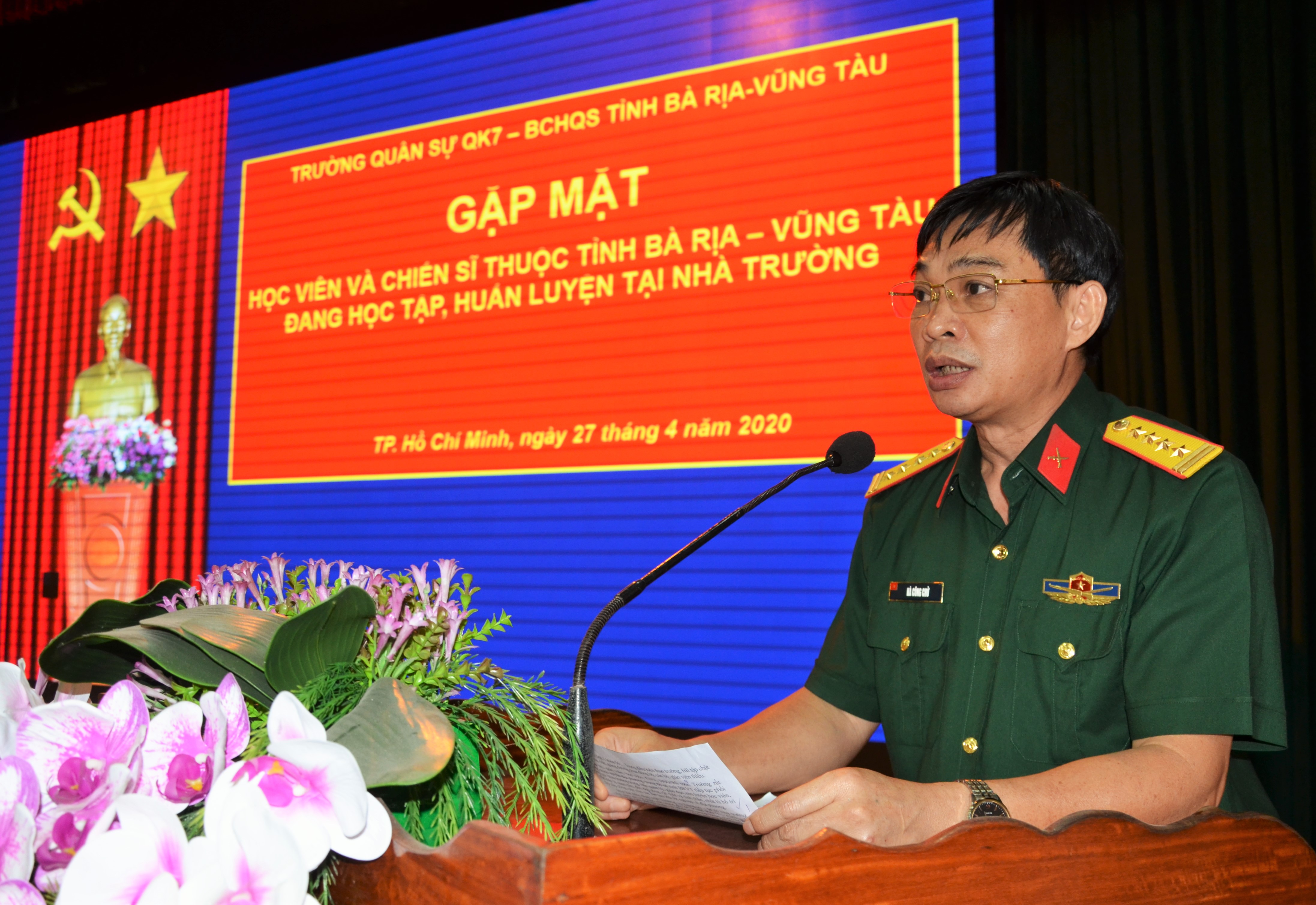 Phát biểu tại buổi gặp mặt, Đại tá Phạm Phú Ý, Chỉ huy trưởng Bộ CHQS tỉnh Bà Rịa – Vũng Tàu biểu dương, đánh giá cao kết quả học tập, huấn luyện của các đồng chí học viên đang học tập, huấn luyện các chuyên ngành tại Trường Quân sự Quân khu.