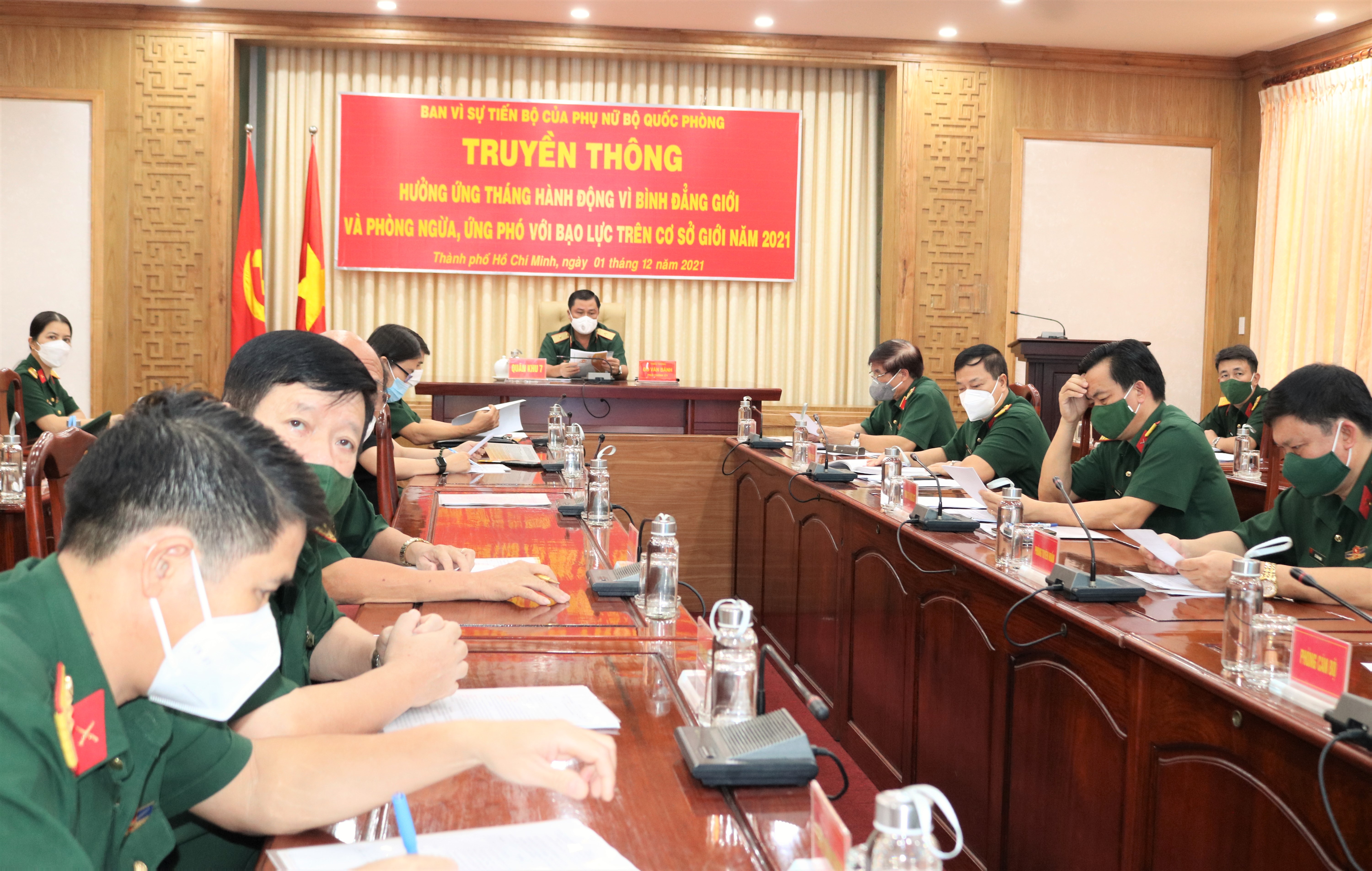 Tham dự có Thượng tướng Lê Huy Vịnh, Ủy viên Trung ương Đảng, Ủy viên Quân ủy Trung ương, Thứ trưởng Bộ Quốc phòng, Trưởng Ban Vì sự tiến bộ của phụ nữ Bộ Quốc phòng. Thiếu tướng Đỗ Văn Bảnh, Phó Chính ủy Quân khu 7 chủ trì tại điểm cầu Quân khu.