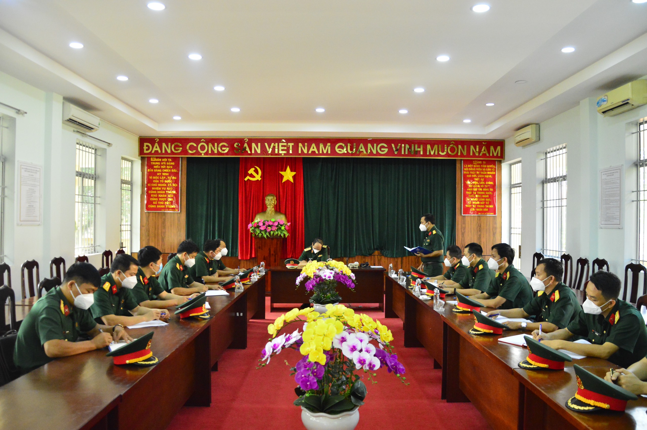 Ban Chỉ huy Trung đoàn Gia Định báo cáo hoạt động huấn luyện chiến sĩ mới.