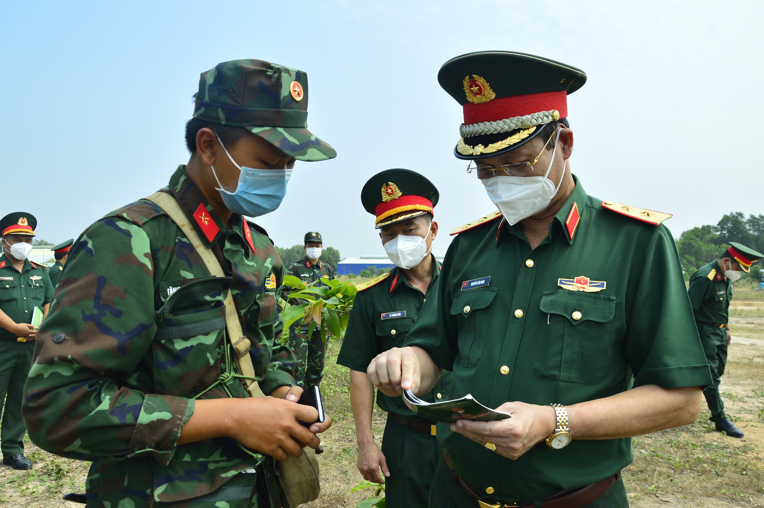 Trung tướng Nguyễn Văn Nam kiểm tra sổ tay của chiến sĩ.