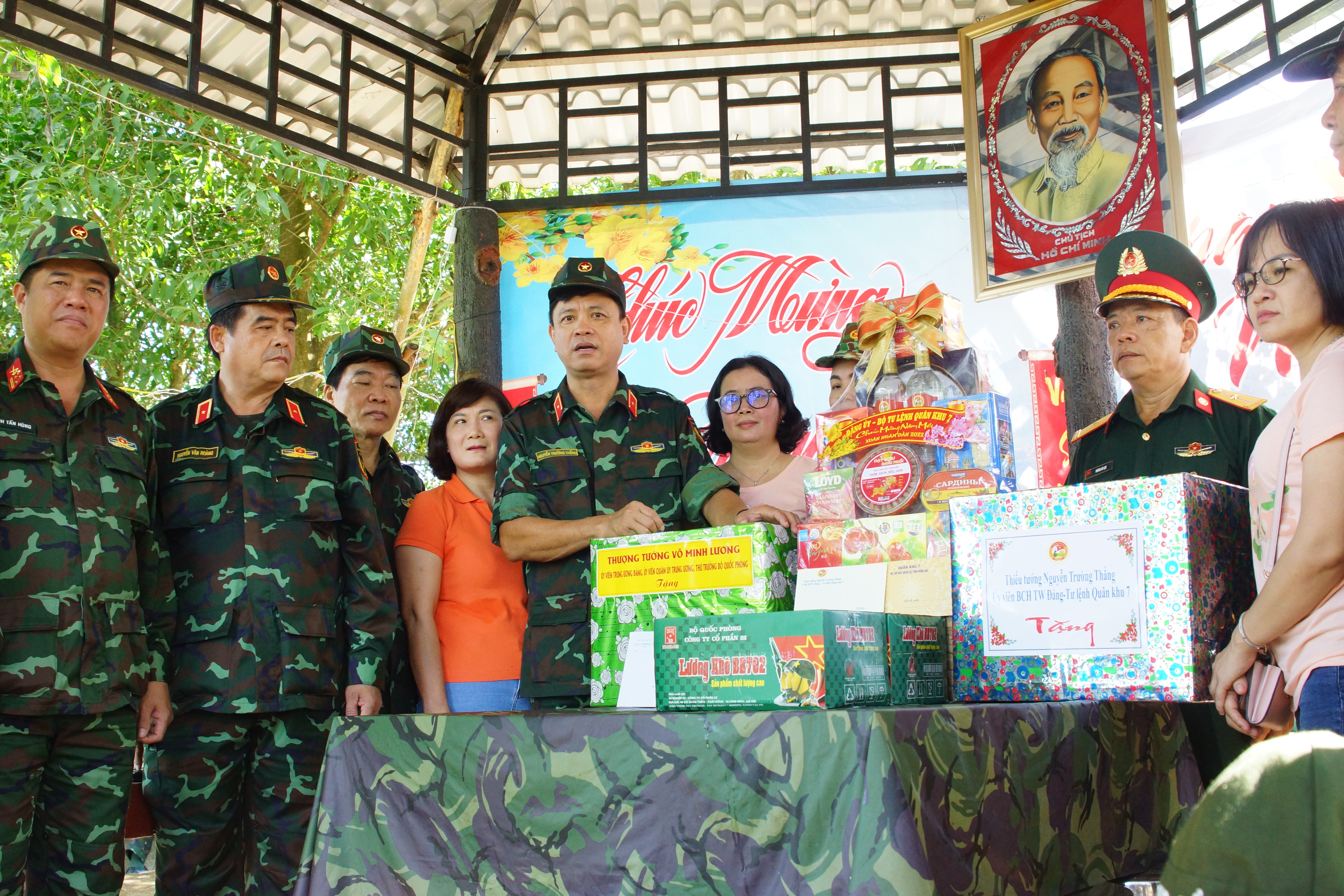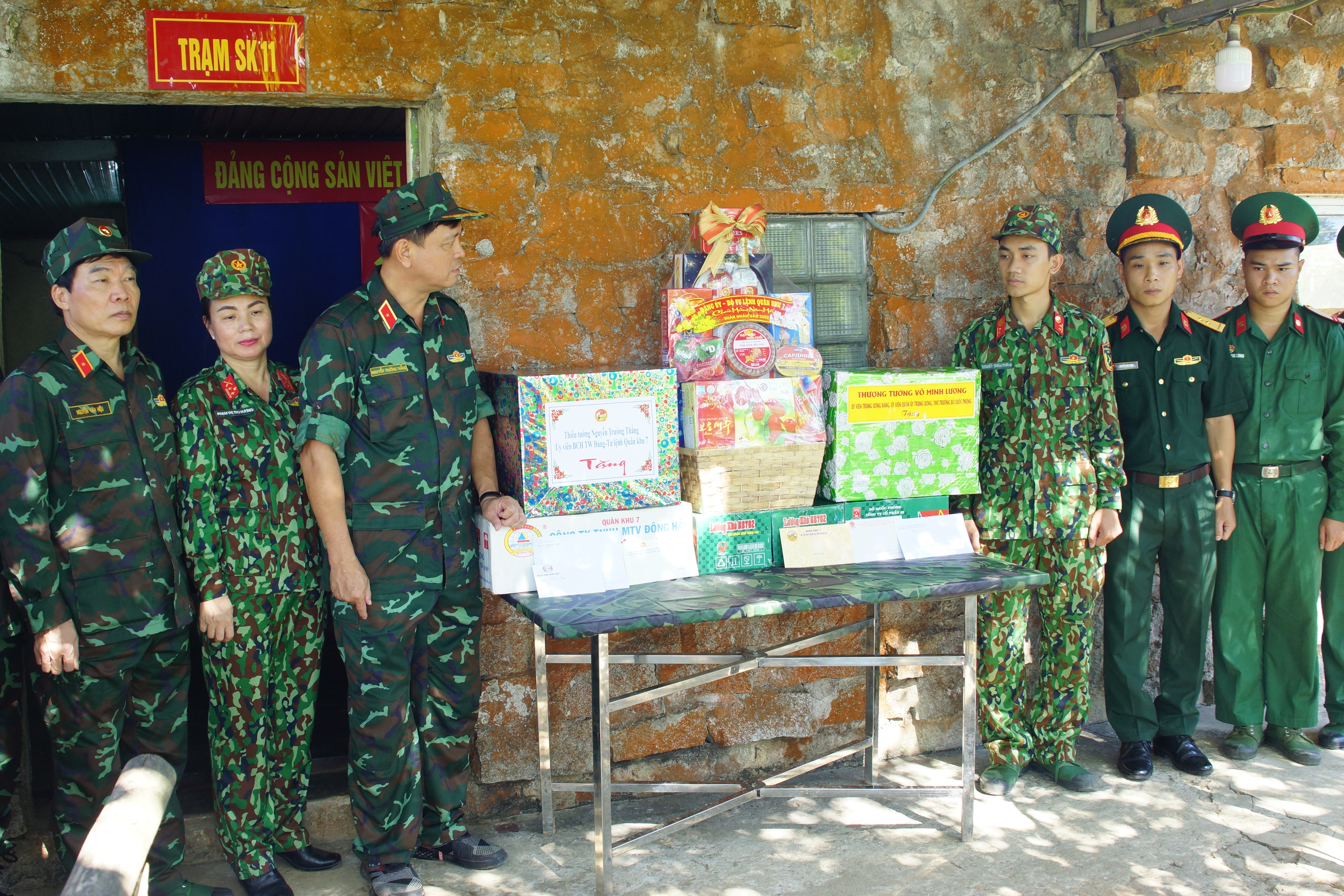 Đồng chí Tư lệnh tặng quà của Bộ Quốc phòng, Bộ Tư lệnh Quân khu cho cán bộ, chiến sĩ Trạm SK11, Lữ đoàn Thông tin 23