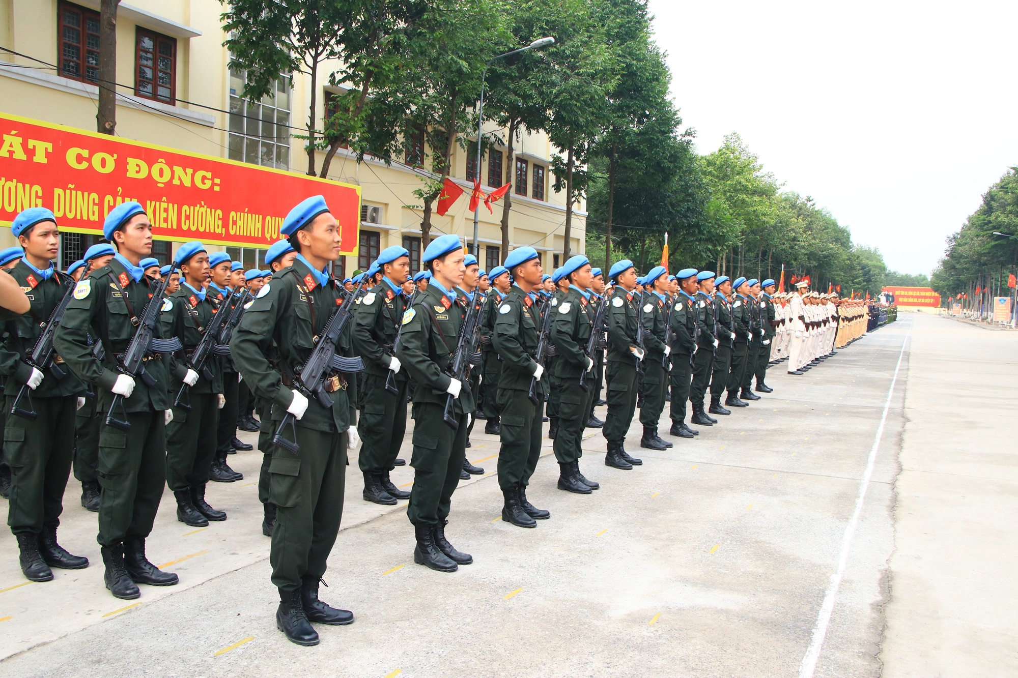 Lực lượng Công an tham gia diễu binh, diễu hành kỷ niệm 50 năm Ngày giải phóng miền Nam, thống nhất đất nước gồm 17 khối (trong đó có 12 khối đi và 5 khối đứng) với gần 3.000 cán bộ, chiến sĩ đang tập trung tại Trung tâm Huấn luyện bồi dưỡng nghiệp vụ và giáo dục nghề nghiệp số 2, Bộ Tư lệnh Cảnh sát cơ động, Bộ Công an (huyện Long Thành, tỉnh Đồng Nai).