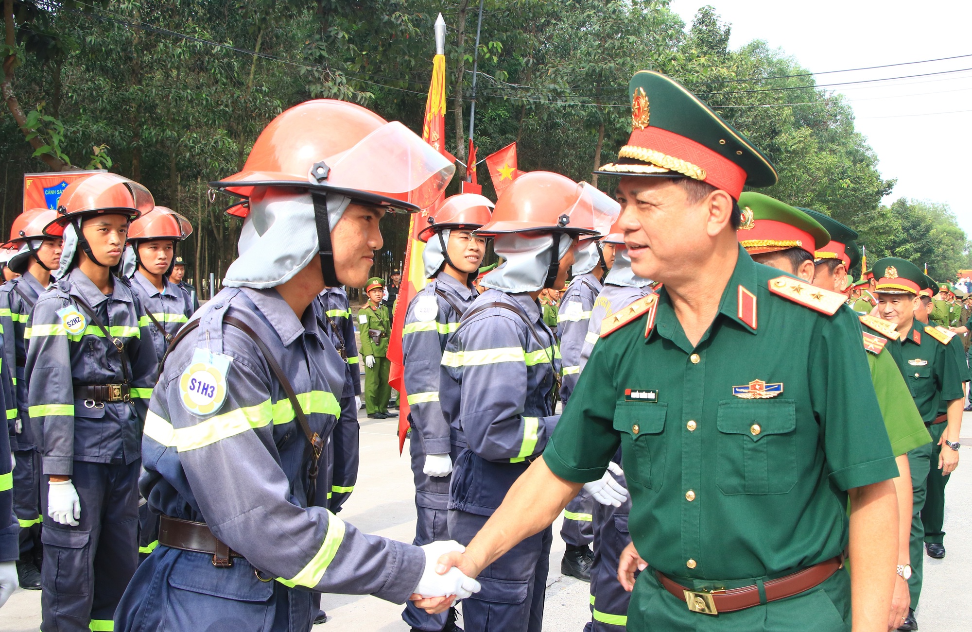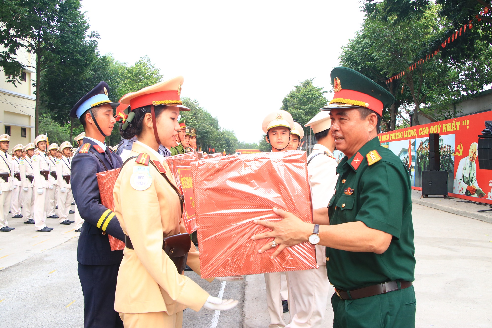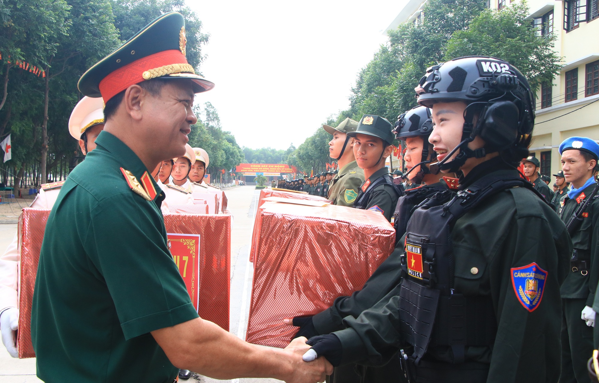 "Tôi rất chia sẻ khó khăn với các chiến sĩ công an trong điều kiện khắc nghiệt của thời tiết, nắng, nóng ở khu vực miền Đông Nam Bộ, với các chiến sĩ nam đã rất vất vả, các đồng chí nữ càng gian nan gấp nhiều lần. Nhưng với mỗi đồng chí, đây là danh dự, niềm tự hào của cả cuộc đời. Tôi mong muốn các chiến sĩ cố gắng khắc phục mọi khó khăn, quyết tâm cao nhất, với tinh thần “Thần tốc quyết thắng”, để thực hiện những động tác thật mạnh mẽ, thống nhất, đều và đẹp, thể hiện sức mạnh hào hùng của lực lượng Công an Nhân dân".