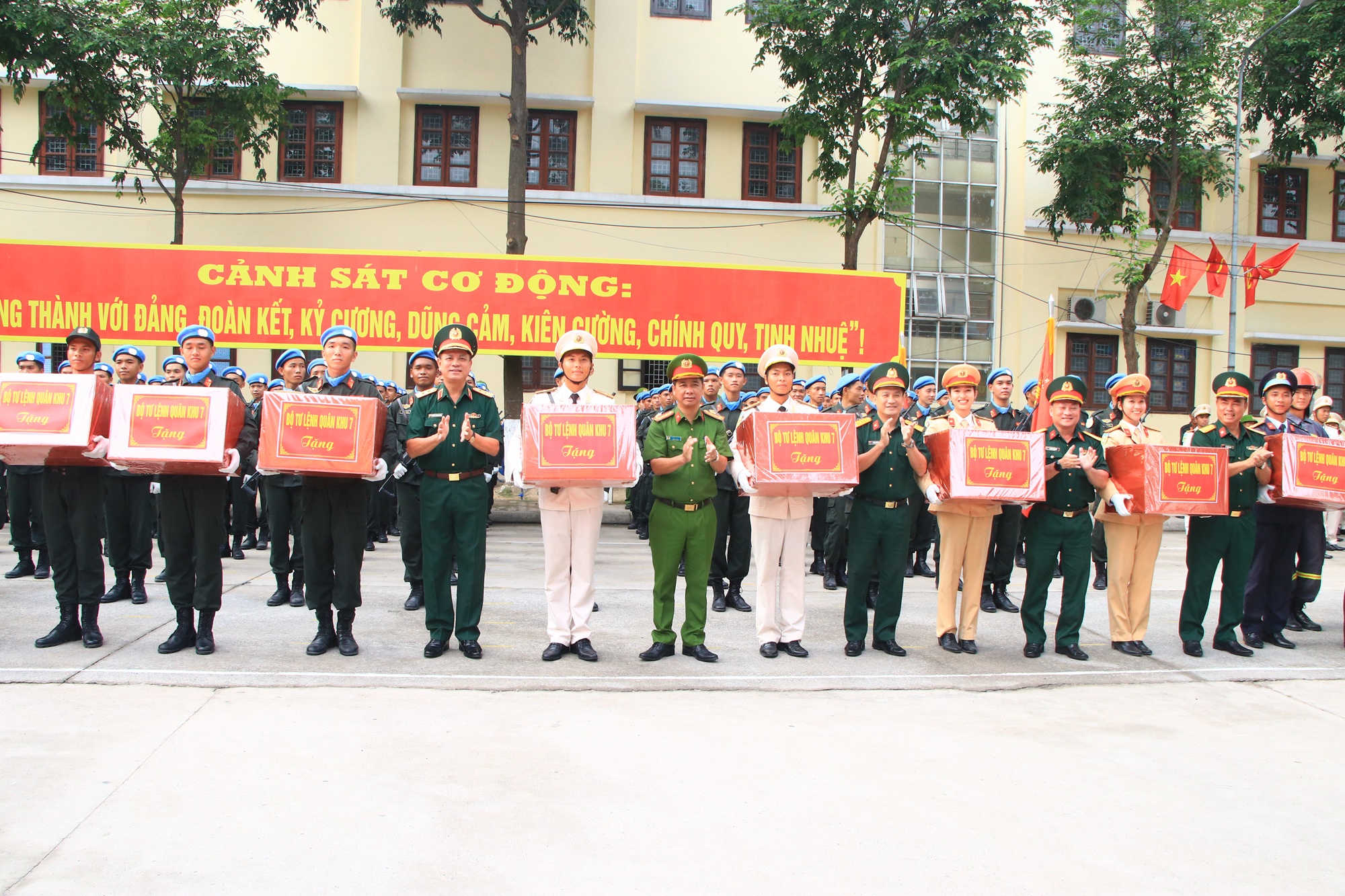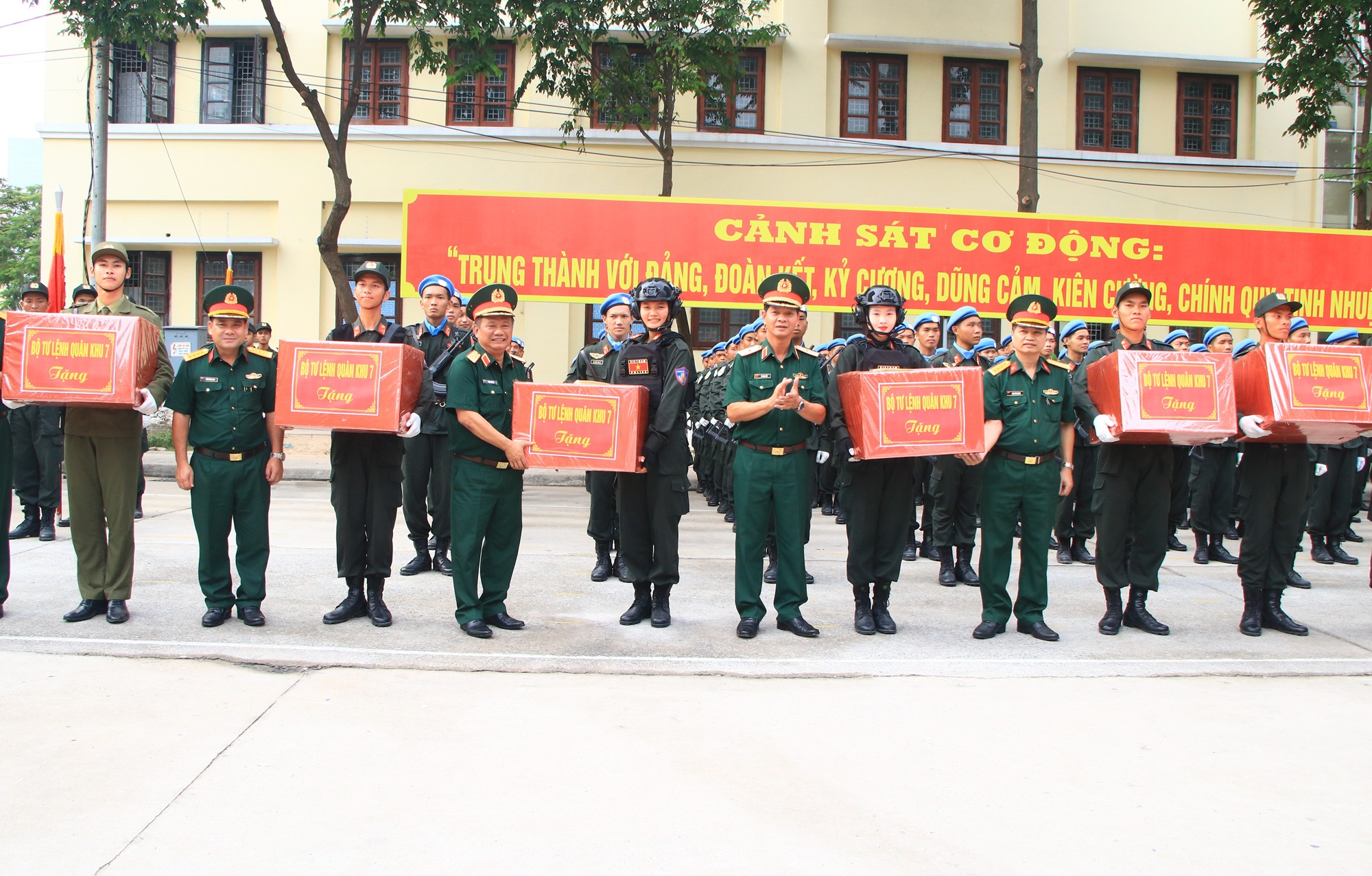 Trung tướng Nguyễn Trường Thắng, Tư lệnh Quân khu tặng quà cho các khối. Đại táLê Xuân Bình, Phó Tư lệnh - Tham mưu trưởng Quân khu tặng quà cho các khối. Thủ trưởng Bộ Tư lệnh Quân khu và đoàn công tác tặng quà cho các khối. Thủ trưởng các cơ quan Quân khu và đoàn công tác tặng quà cho các khối.