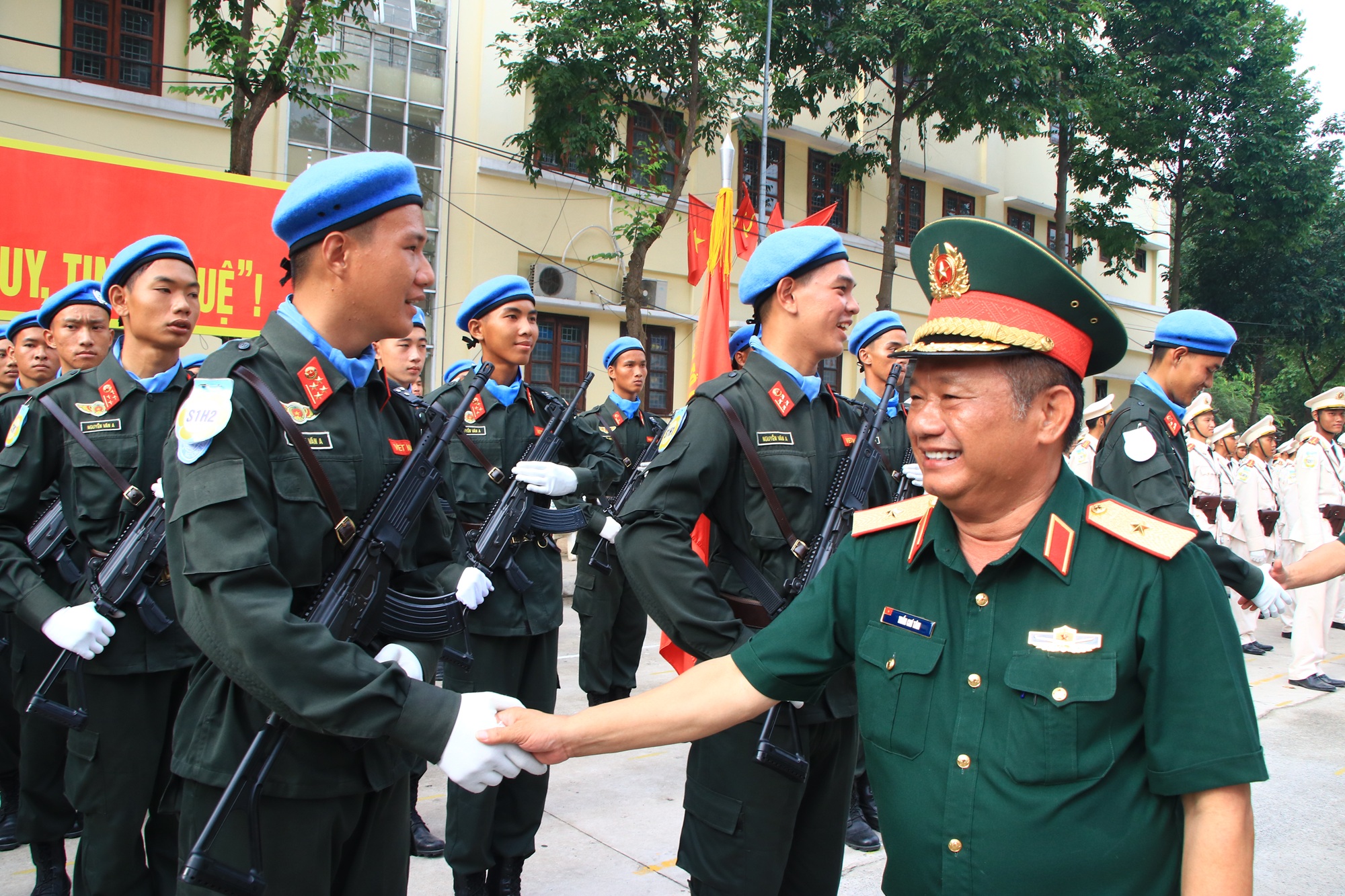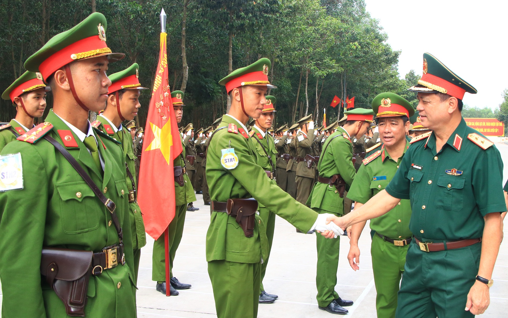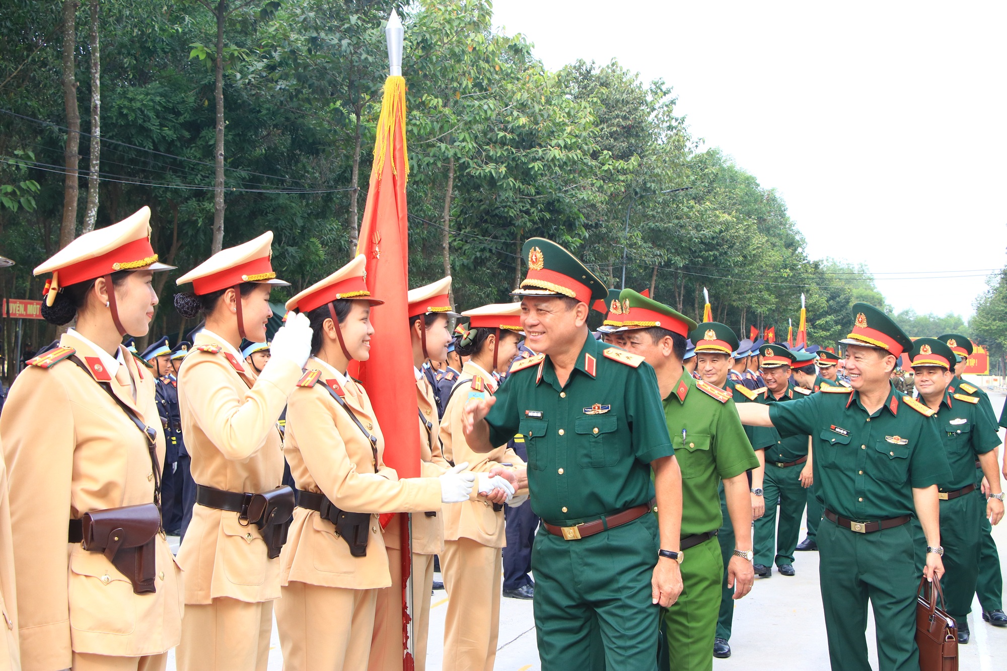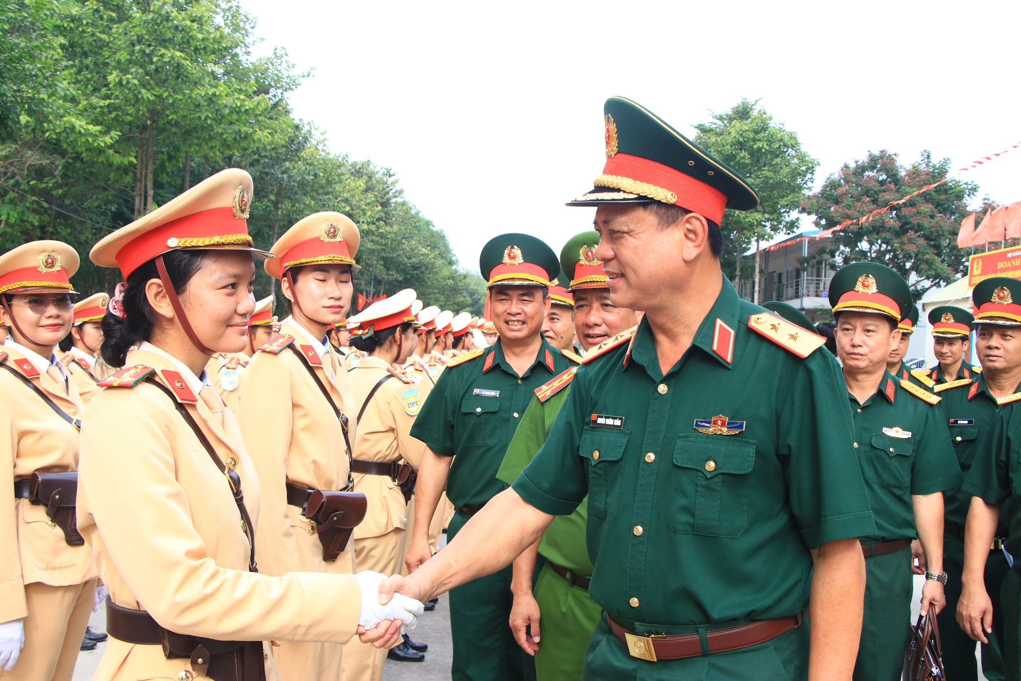 Những nụ cười rạng rỡ, bắt tay thật chặt là tình cảm, sự quan tâm của Thủ trưởng Bộ Tư lệnh Quân khu và đoàn công tác, tiếp thêm sức mạnh chiến thắng cho cán bộ, chiến sĩ Công an Nhân dân trong thực hiện nhiệm vụ diễu binh, diễu hành A50 sắp tới.