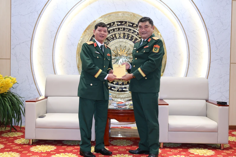 Trung tướng Lê Xuân Thế, Ủy viên Trung ương Đảng, Tư lệnh Quân khu tặng quà chúc Tết Cục Chính trị Quân khu.