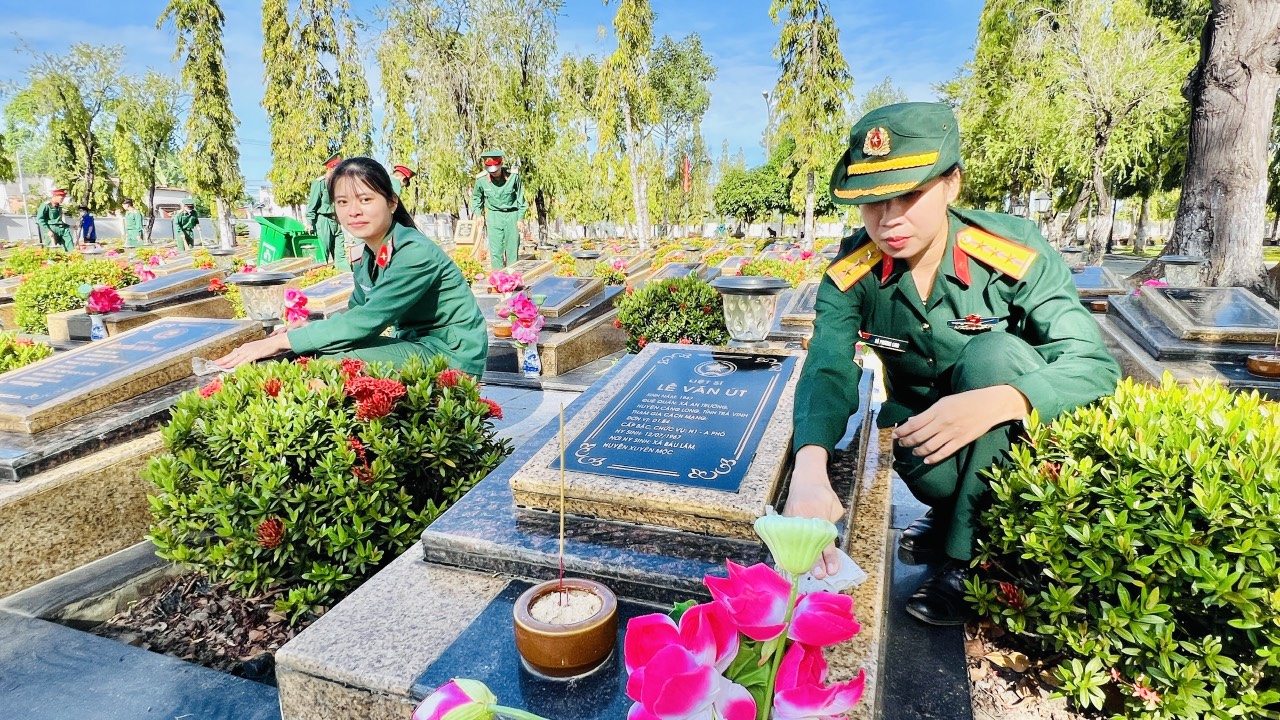Hơn 120 cán bộ, chiến sĩ, đoàn viên thanh niên (ĐVTN), hội viên phụ nữ dâng hương tưởng nhớ và bày tỏ lòng biết ơn sâu sắc đối với các anh hùng liệt sĩ đã hy sinh vì sự nghiệp đấu tranh giải phóng dân tộc, thống nhất đất nước; đồng thời, lực lượng cắt tỉa cây cảnh, lau chùi các phần mộ, chỉnh trang lại khuôn viên Nghĩa trang liệt sĩ tỉnh.