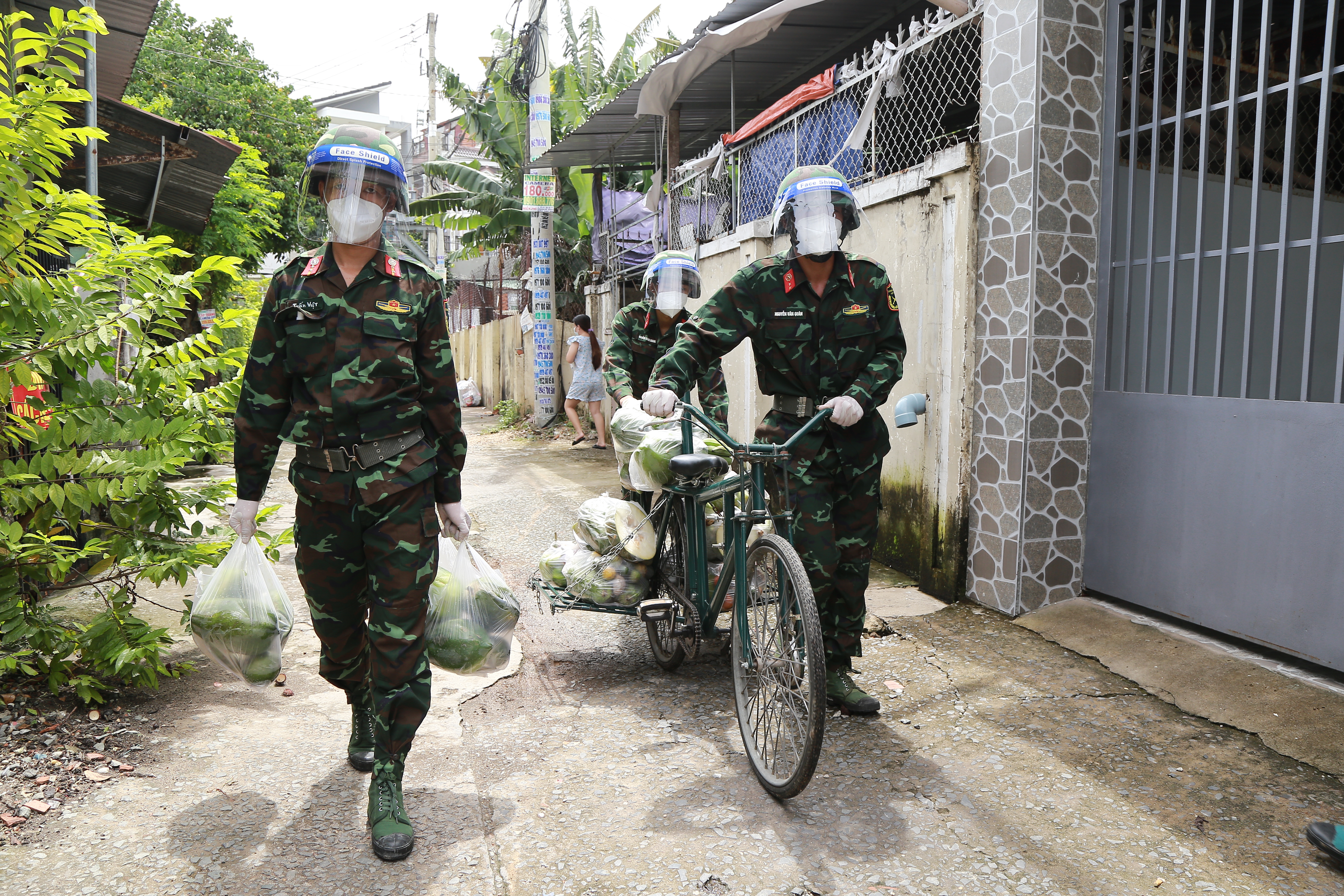 Cán bộ, ĐVTN Trung đoàn 5, Sư đoàn 5 phát quà, giúp đỡ Nhân dân Quận 12 chống dịch.