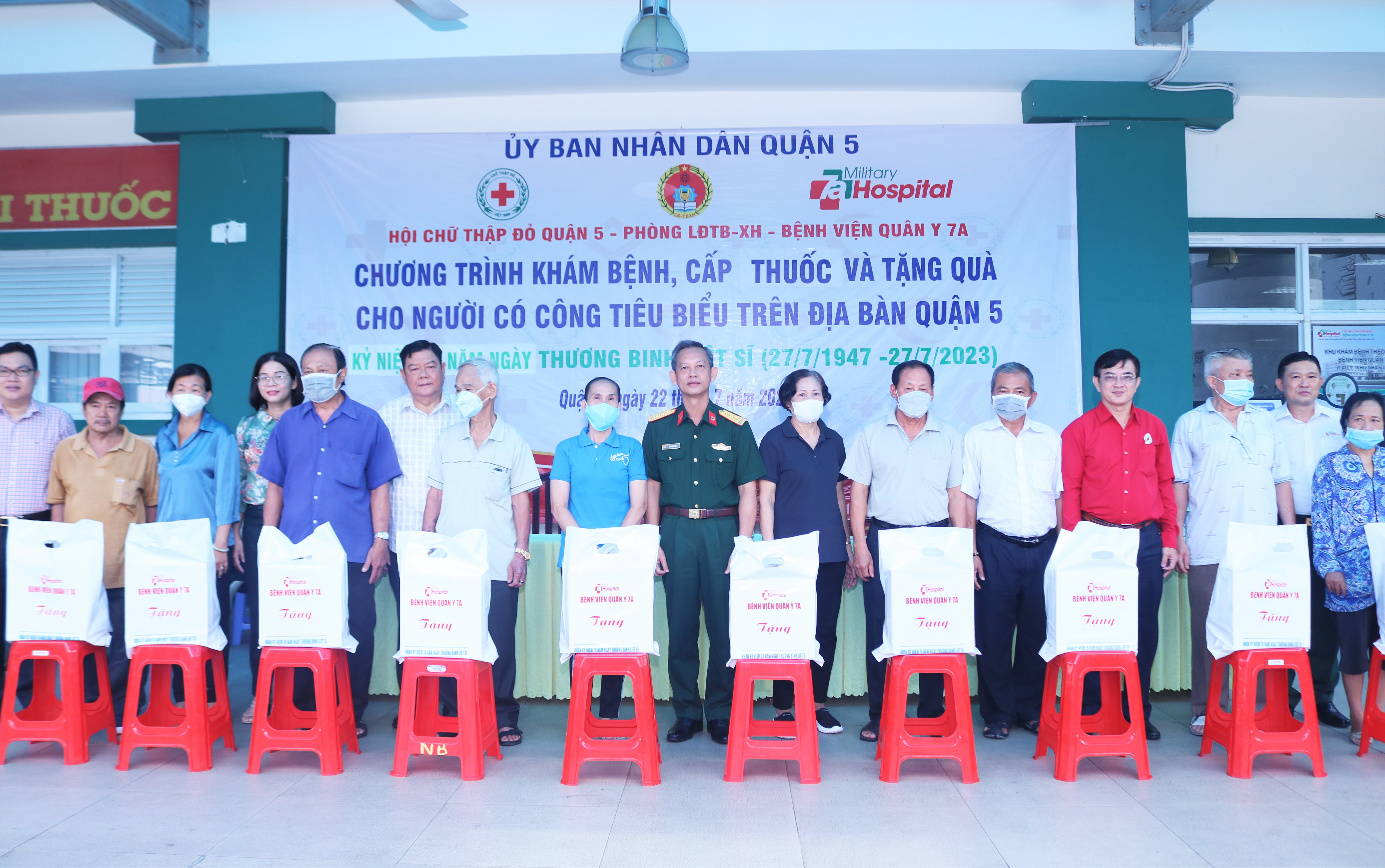 Ban giám đốc Bệnh viện Quân y 7A tặng quà gia đình chính sách.