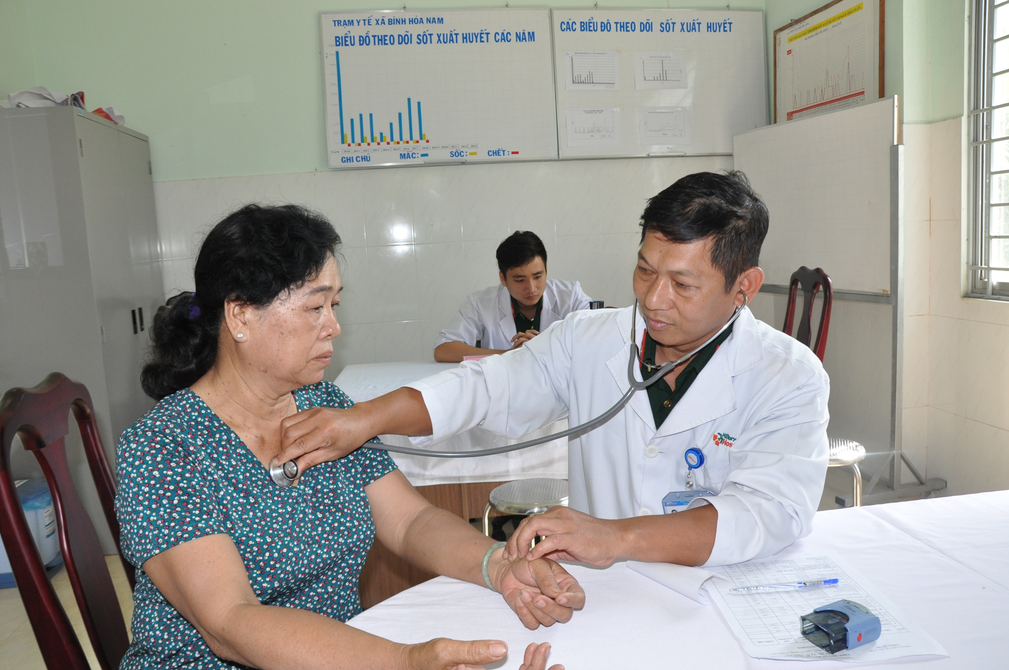 Bác sĩ Bệnh viện Quân y 7A khám bệnh cho người dân.