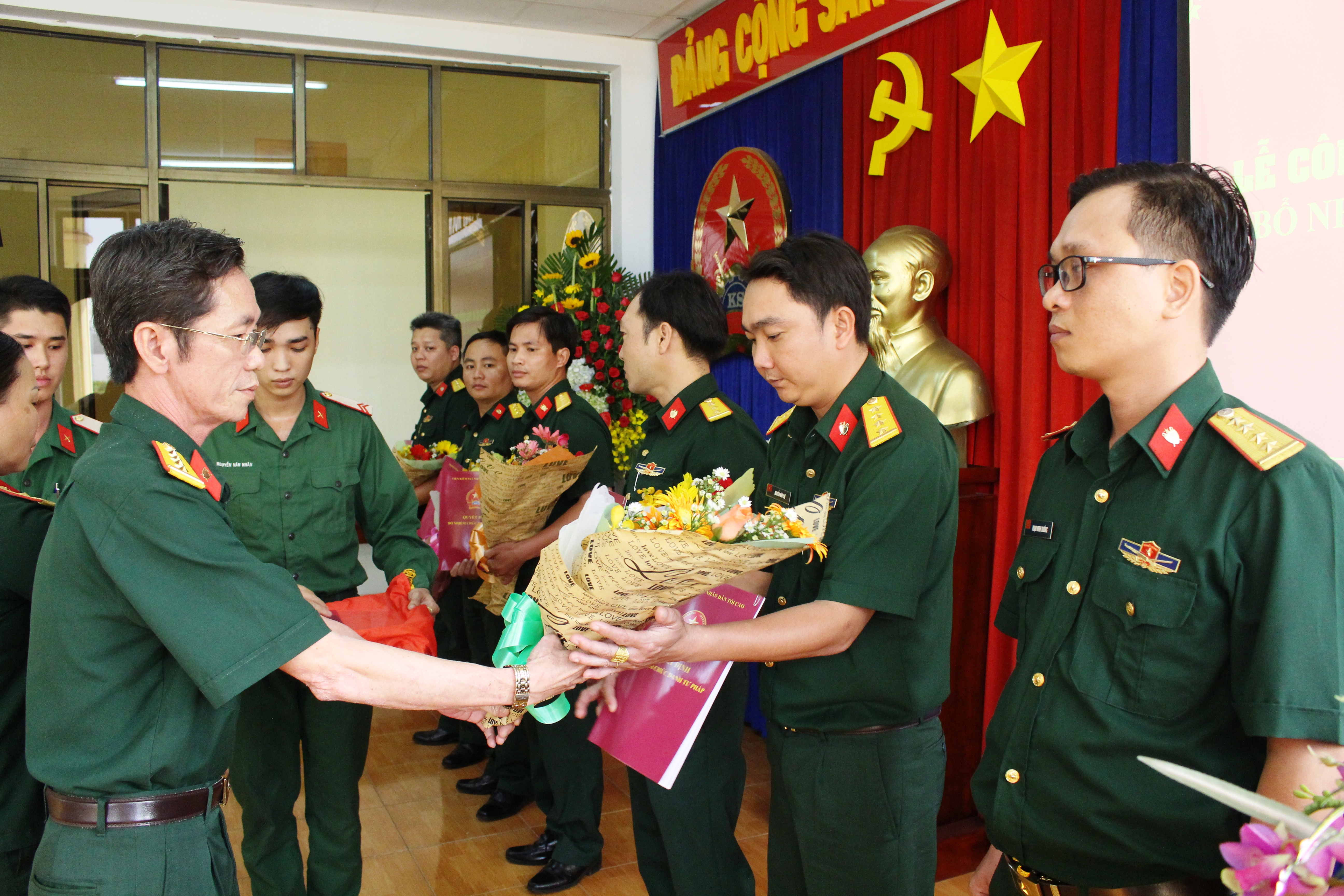 Đại tá Bùi Văn Trí – Viện trưởng Viện kiểm sát Quân sự Quân khu trao quyết định bổ nhiệm cho các đồng chí KSV sơ cấp