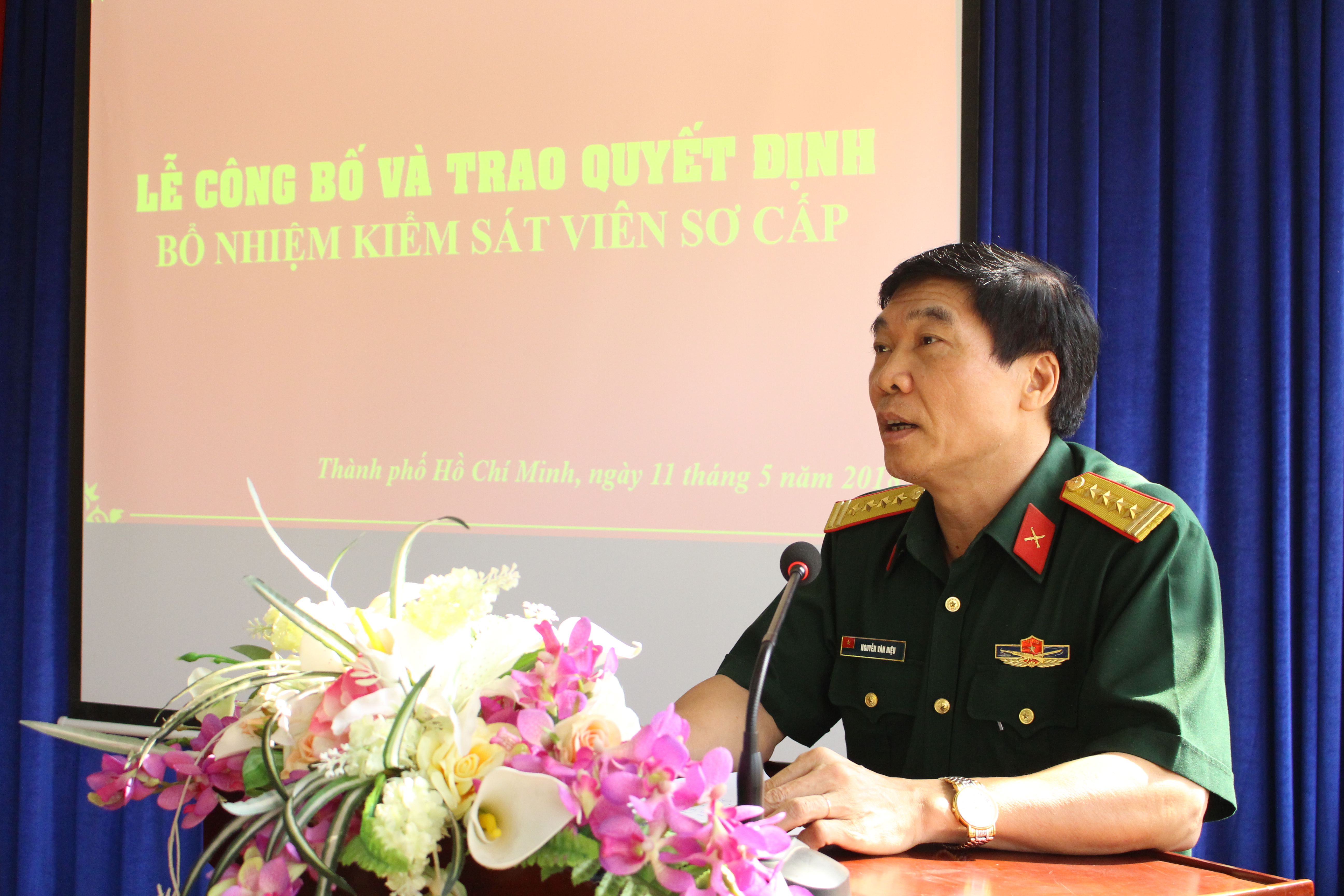 (QK7 – Online) Ngày 11/5/2018, Viện kiểm sát quân sự Quân khu 7 tổ chức lễ trao quyết định bổ nhiệm Kiểm sát viên sơ cấp năm 2018. Đến dự và chỉ đạo buổi lễ có Đại tá Nguyễn Văn Hiệu – Phó Chủ nhiệm chính trị Quân khu, Đại tá Bùi Văn Trí – Viện trưởng Viện kiểm sát quân sự Quân khu, thủ trưởng các Viện kiểm sát khu vực (VKSQSKV) và toàn thể cán bộ, chiến sĩ Viện kiểm sát quân sự Quân khu.