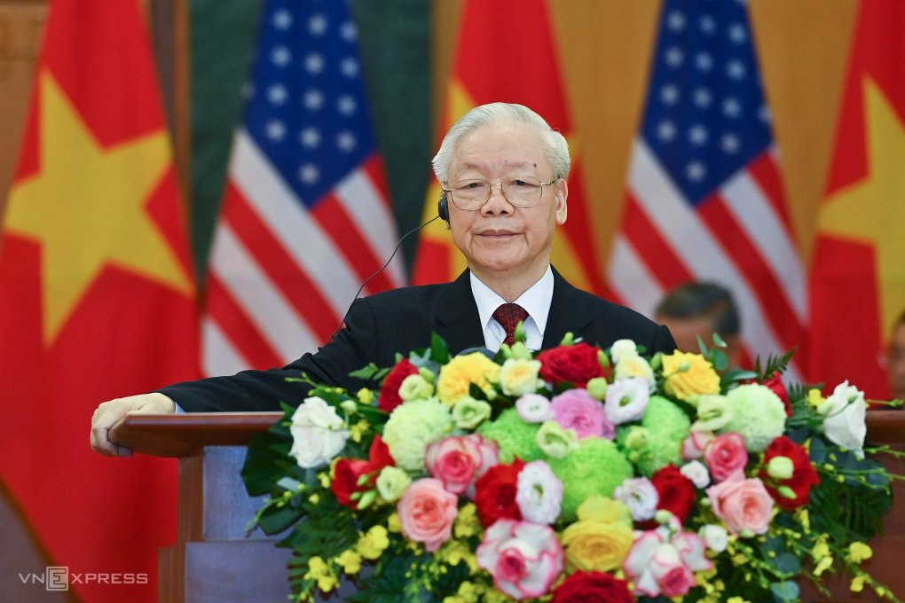 "Chúng tôi cũng nhấn mạnh rằng sự hiểu biết lẫn nhau, hoàn cảnh của nhau, tôn trọng các lợi ích chính đáng của nhau và không can thiệp vào công việc nội bộ của nhau là những nguyên tắc cơ bản, luôn có ý nghĩa quan trọng trong quan hệ hai nước và quan hệ quốc tế", Tổng Bí thư nói, thêm rằng Việt Nam đánh giá cao và coi trọng khẳng định của Mỹ ủng hộ một nước Việt Nam "mạnh, độc lập, tự cường và thịnh vượng".