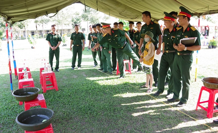 (QK7 Online) - Sáng 22/10, Bộ Tư lệnh Thành phố Hồ Chí Minh tổ chức khánh thành công trình thể dục thể thao ngoài trời tại Giáo xứ Thanh Phong, xã Phú Mỹ, Thành phố Hồ Chí Minh. Đại tá Thái Thành Đức, Phó Chủ nhiệm Chính trị Quân khu đến dự.