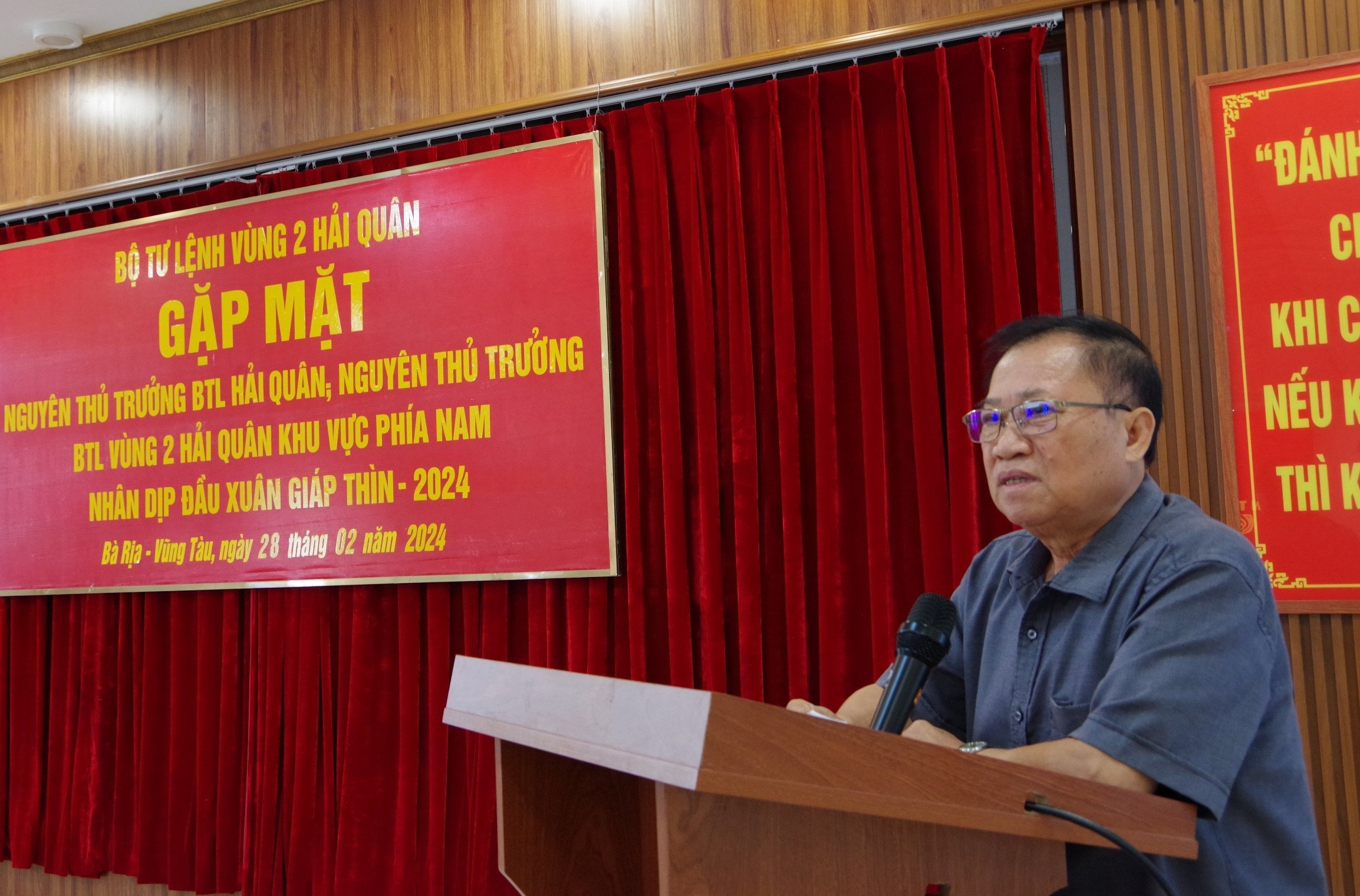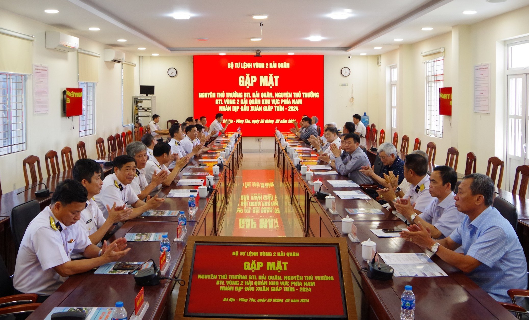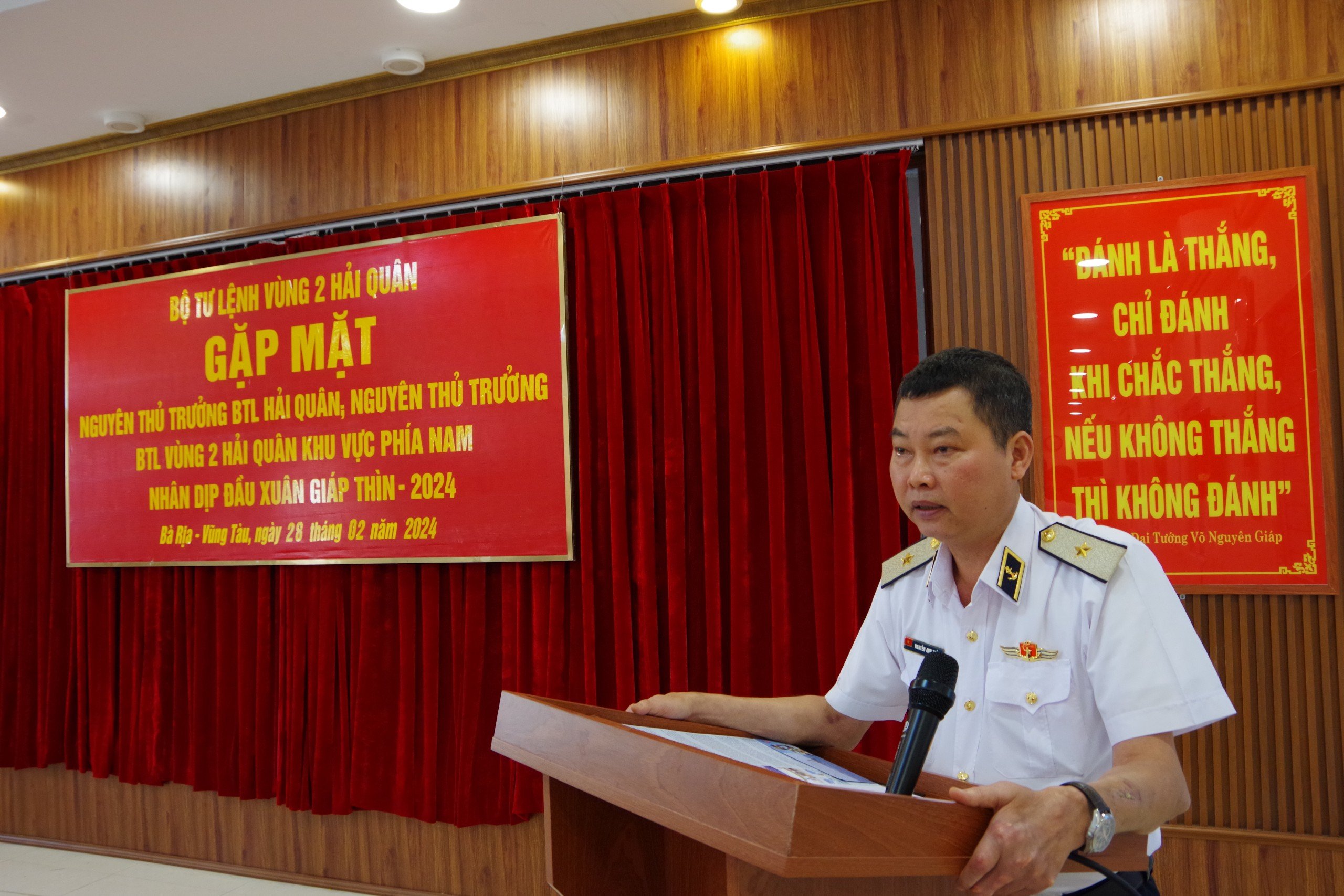 (QK7 Online) - Chiều 28/2, tại thành phố Vũng Tàu, tỉnh Bà Rịa-Vũng Tàu, Bộ Tư lệnh Vùng 2 Hải quân tổ chức gặp mặt nguyên thủ trưởng Bộ Tư lệnh Quân chủng và thủ trưởng Bộ Tư lệnh Vùng 2 khu vực phía Nam nhân dịp đầu xuân Giáp Thìn 2024. Chuẩn Đô đốc Nguyễn Anh Tuấn, Tư lệnh Vùng 2 chủ trì.