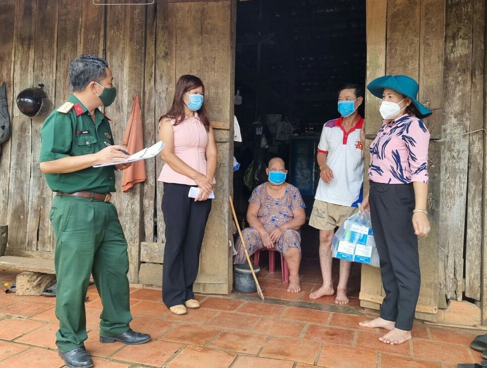 Cán bộ Bộ CHQS tỉnh Bình Phước nắm tình hình, hỗ trợ Nhân dân phòng, chống dịch Covid-19.